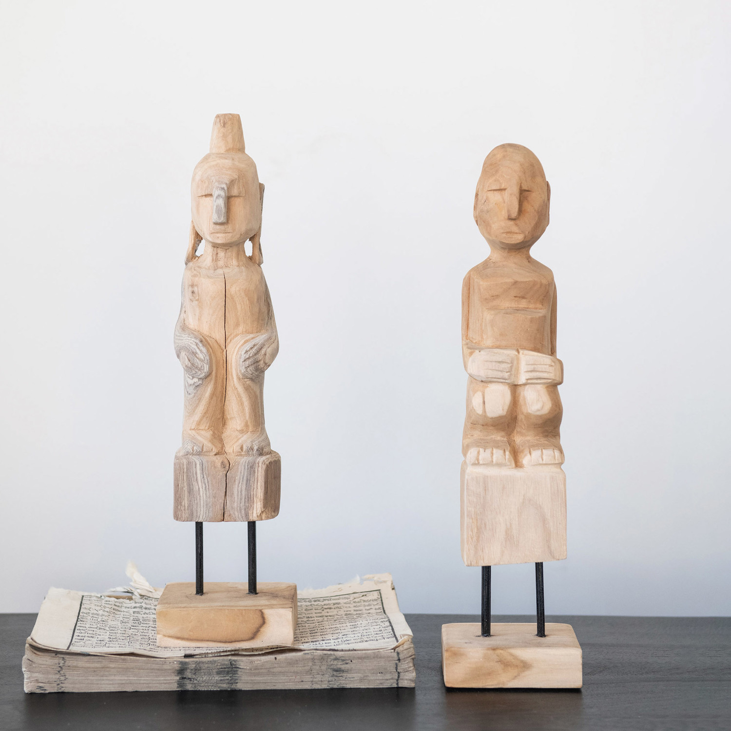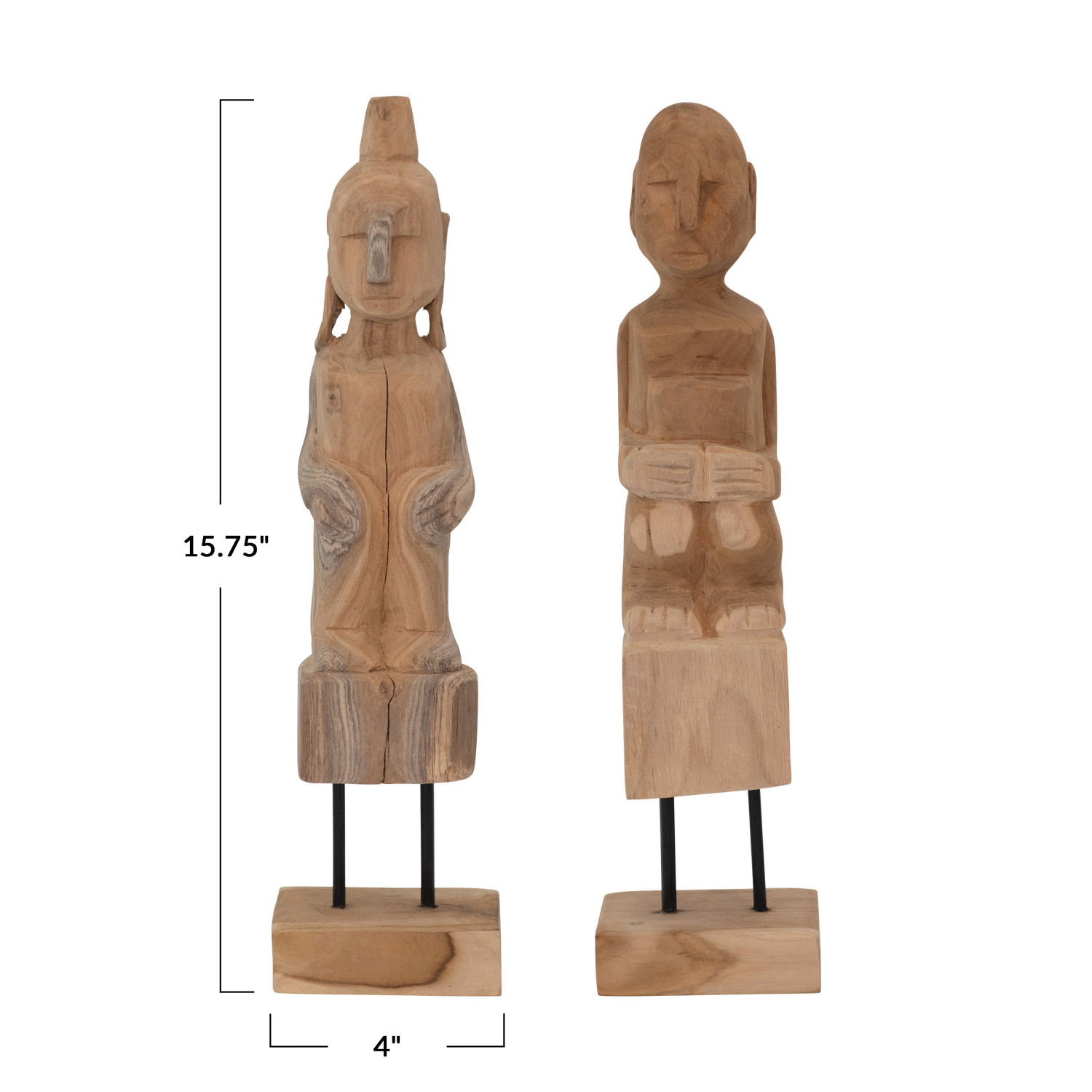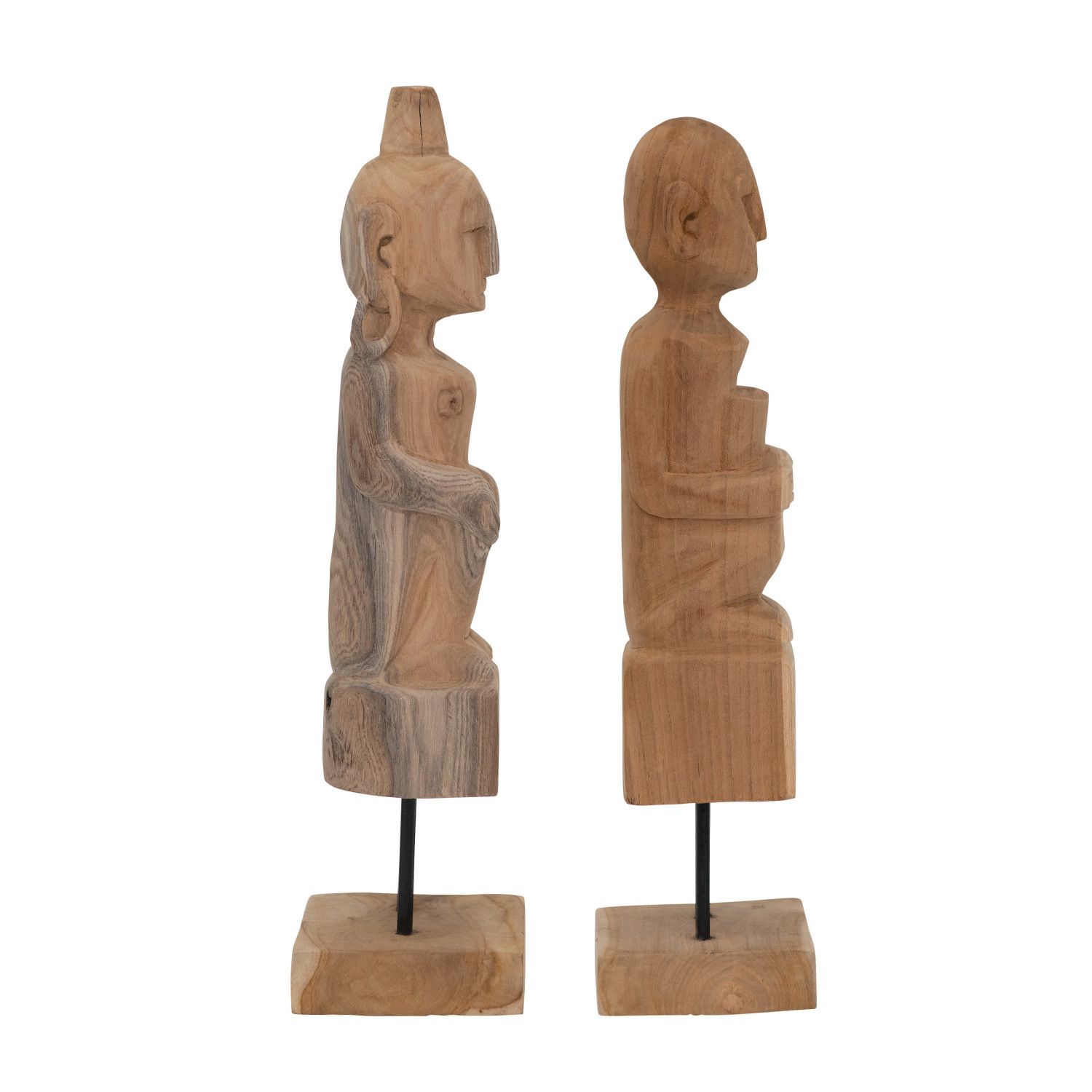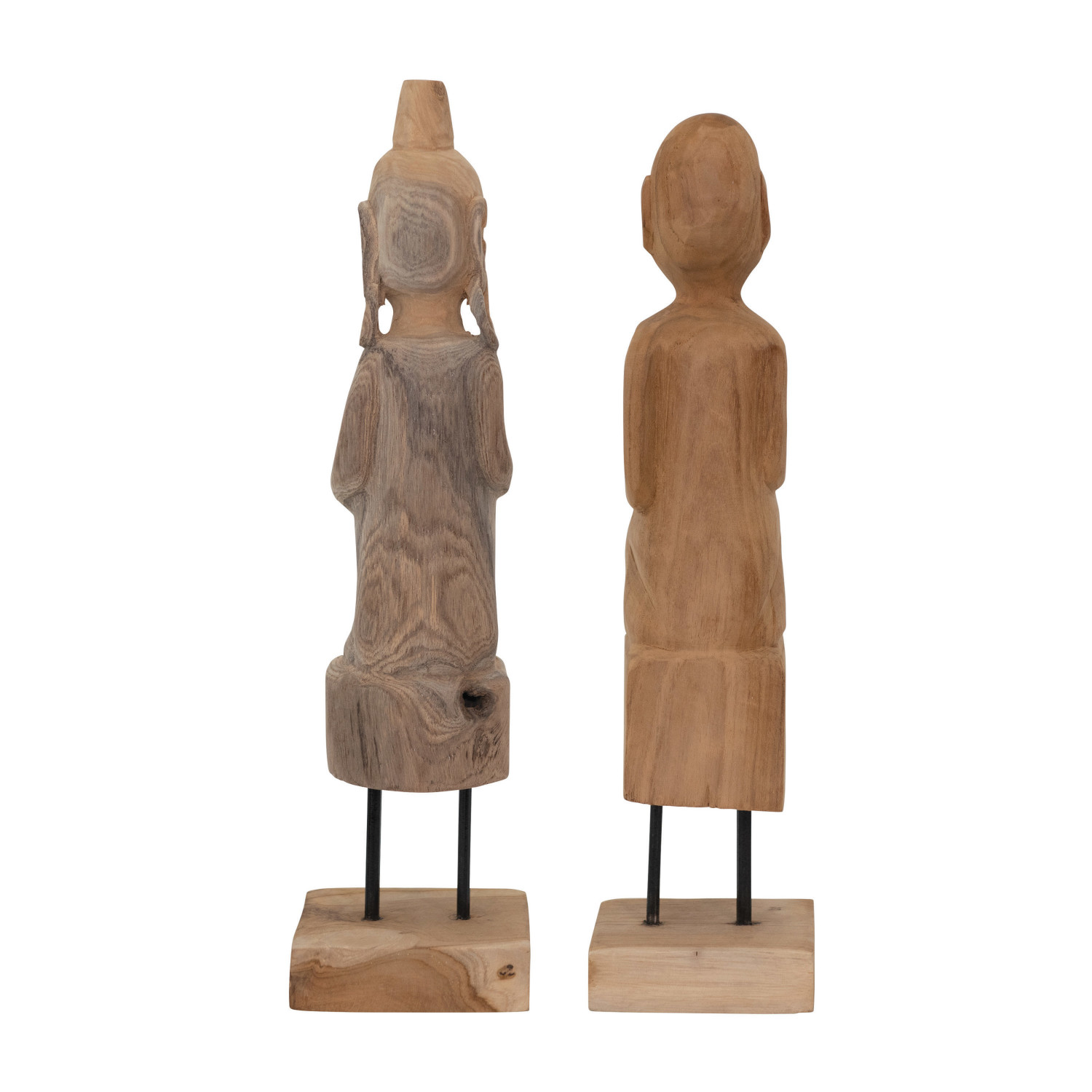 Hand-Carved Teakwood Figure on Stand, 2 Styles