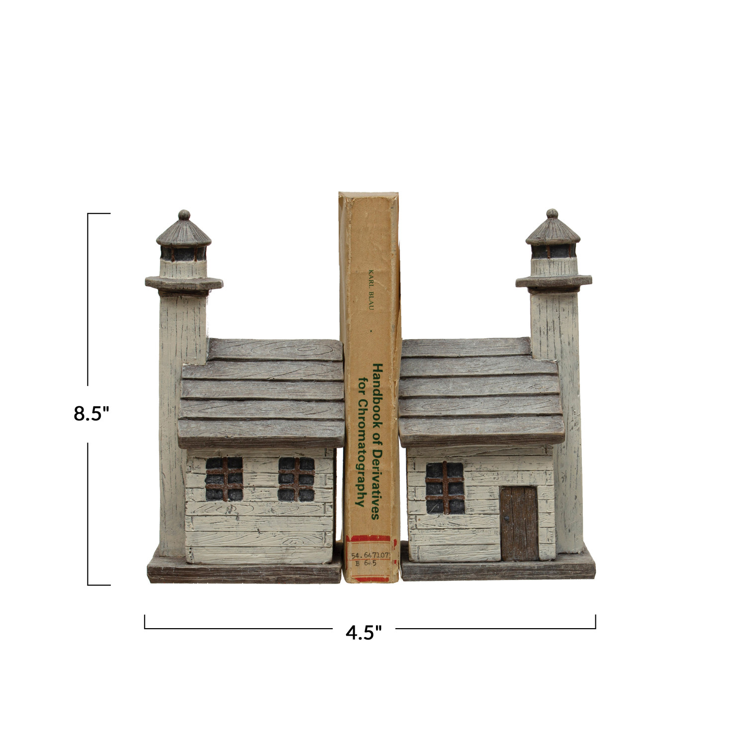 Catalog Name: 4-1/2" Square x 8-1/2"H Resin Lighthouse Bookends, Distressed Finish, Grey & White, Set of 2