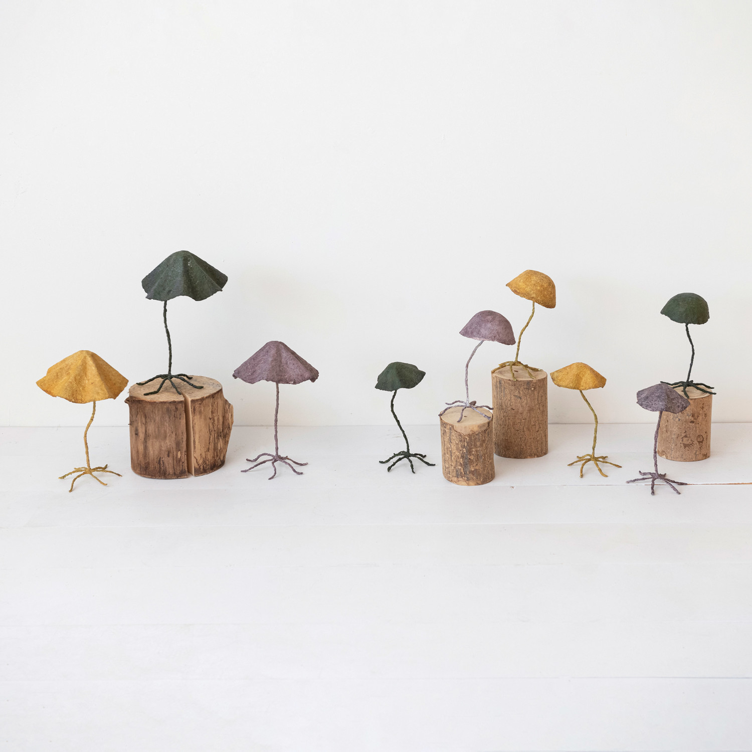 Paper Mache & Metal Mushroom on Footed Stand, 3 Colors