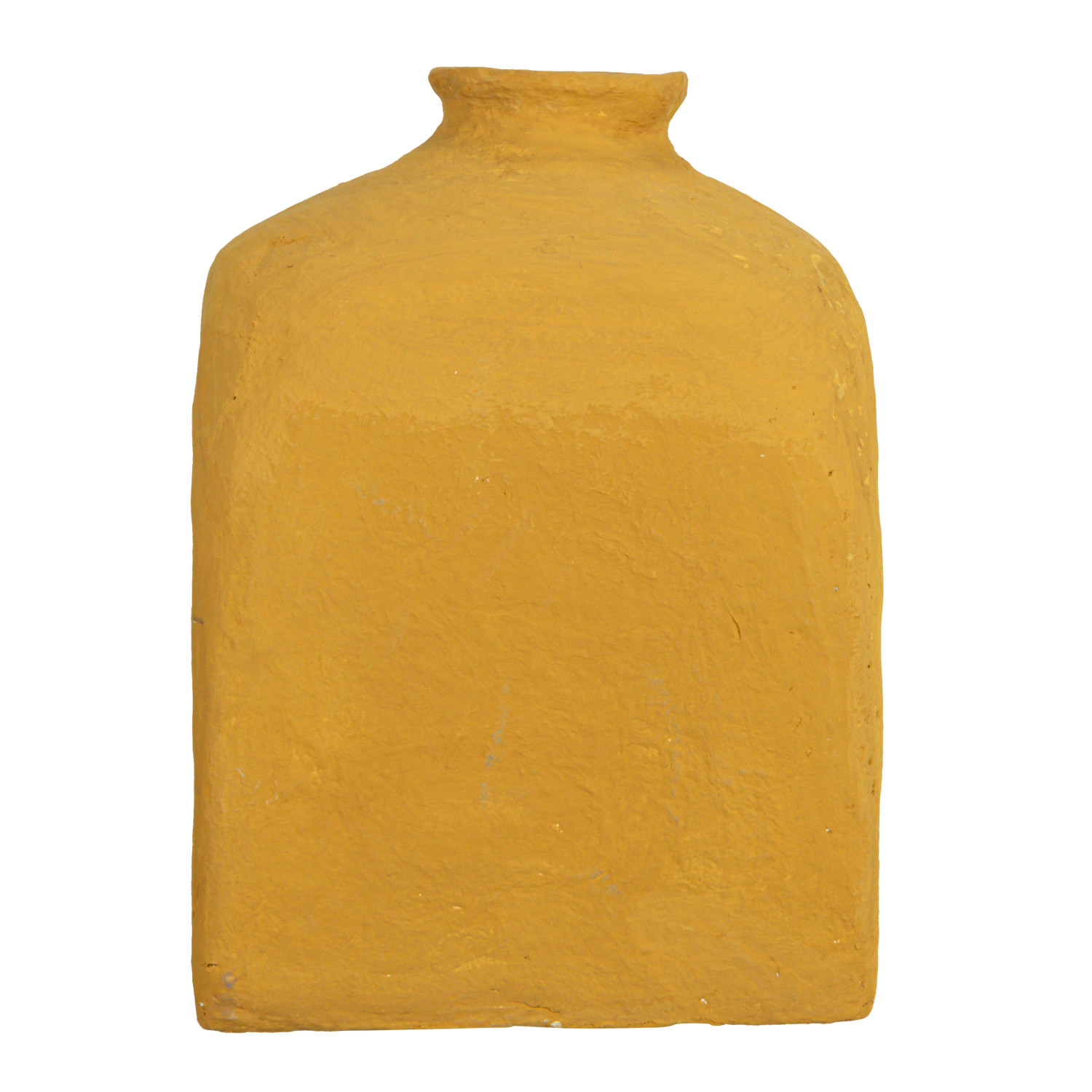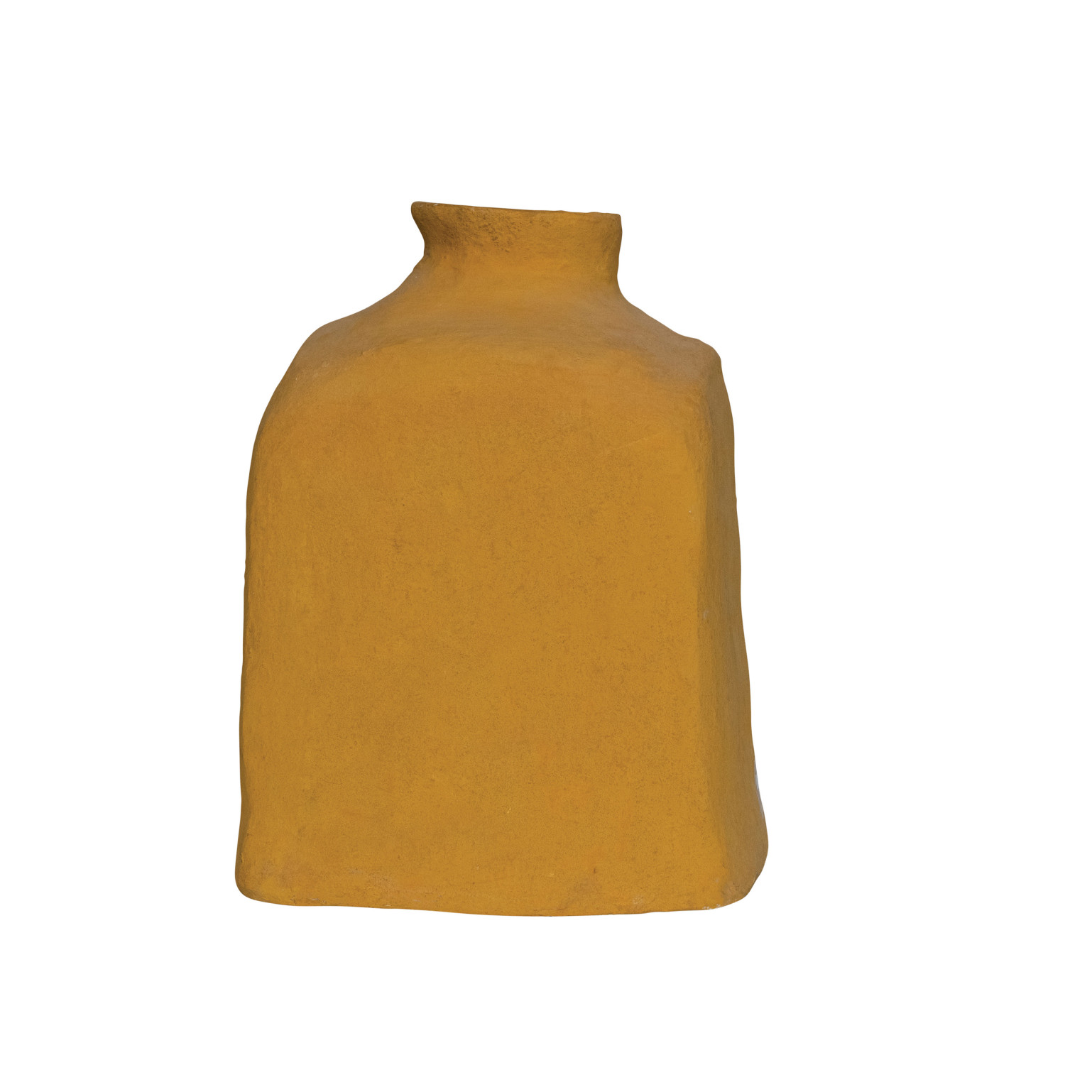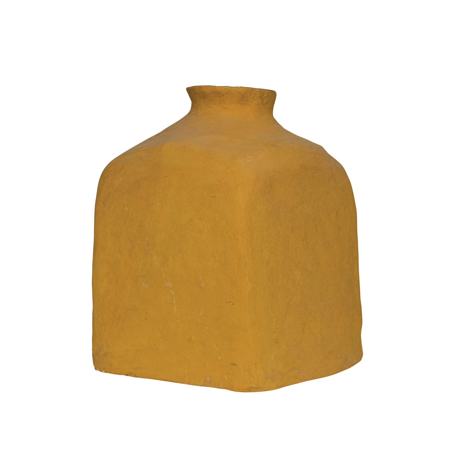 Add some style and personality to any home or office with these stunning vases. These vases come in various shapes, sizes, materials, and designs, offering a wide range of options to suit any preference and decor. Whether looking for a simple and elegant ceramic vase, a colorful and whimsical glass vase, a rustic and natural wood vase, or a modern and sleek metal vase, there is something for everyone in this collection. These vases are perfect for displaying flowers, plants, candles, or other decorative items, or simply as standalone accents that will enhance the beauty and charm of any space. Featuring a square shape and mustard color and texture from paper Mache, this floor vase stands tall at 21 inches and adds elegance and artistic flair to any room with its individual variations. Its bold and vibrant mustard color adds a pop of personality and warmth to any space making it the perfect complement to homes with eclectic, modern, or bohemian decor styles. The wide 7-inch round opening provides ample space to create stunning floral arrangements or showcase tall decorative branches, while its lightweight design allows for easy repositioning, giving anyone the flexibility to create different focal points in any home. Made of paper Mache.