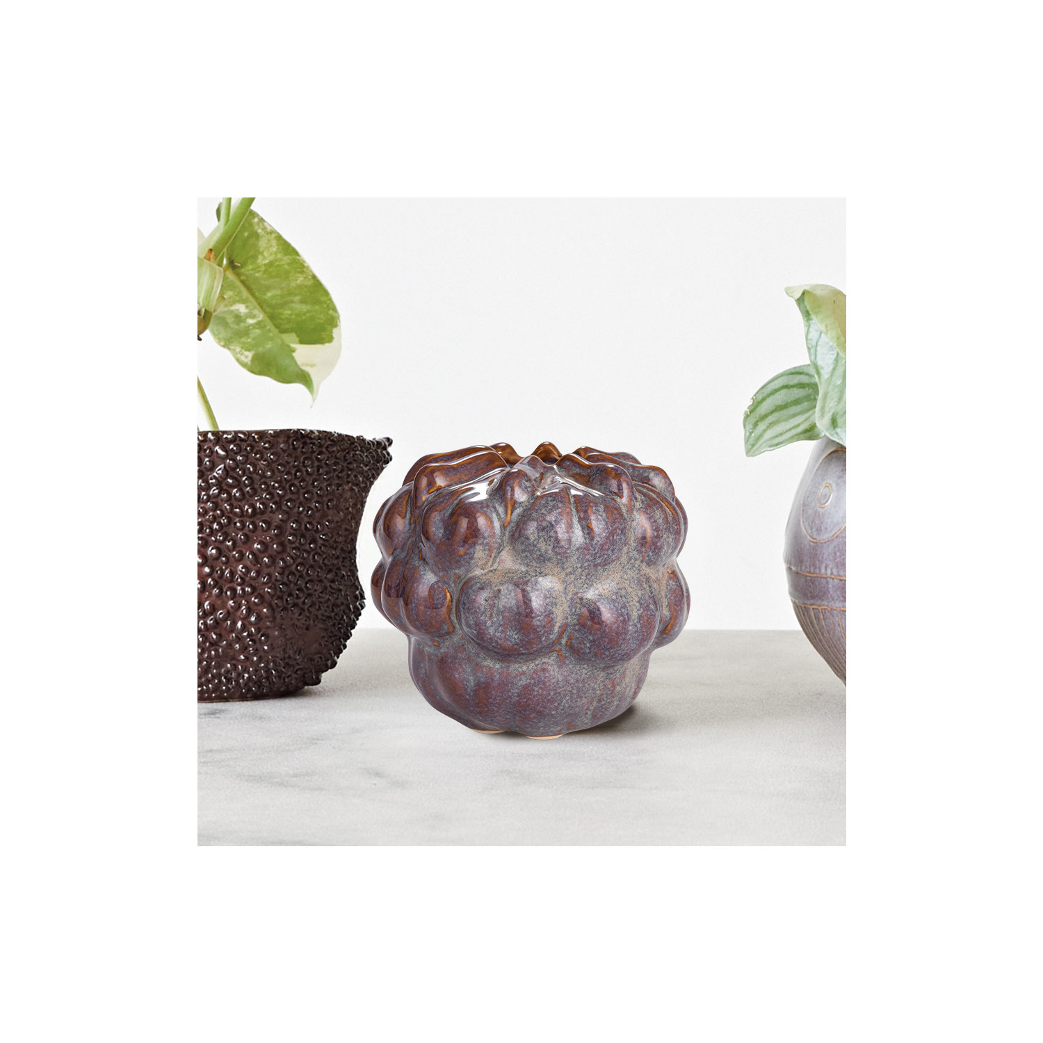 Catalog Name: 5-1/2"L x 5-1/4"W x 4-3/4"H Stoneware Formed Vase, Reactive Glaze, Multi Color (Each One Will Vary)