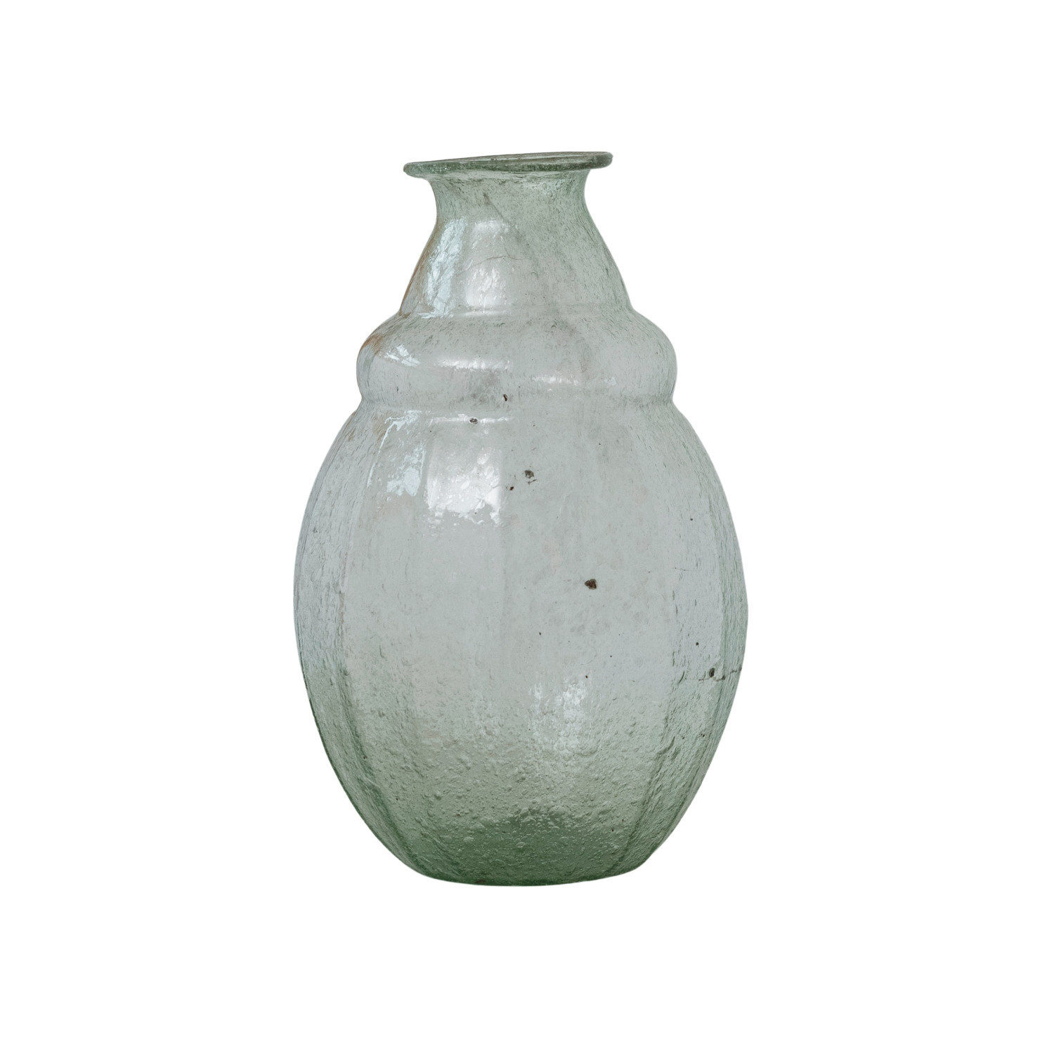 Catalog Name: 6-1/4" Round x 9-3/4"H Hand-Blown Seeded Glass Vase, Green