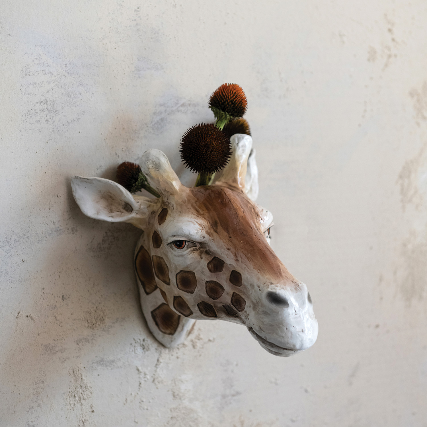 Resin Giraffe Head Wall Vase, Cream Color & Brown
