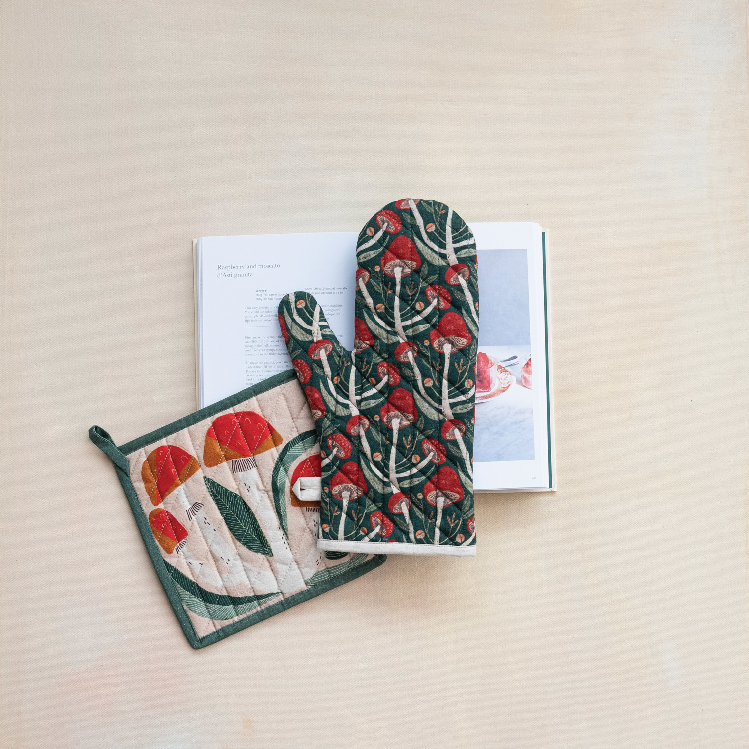 Catalog Name: 12"L Quilted Cotton Oven Mitt w/ Mushrooms Pattern, Multi Color ©