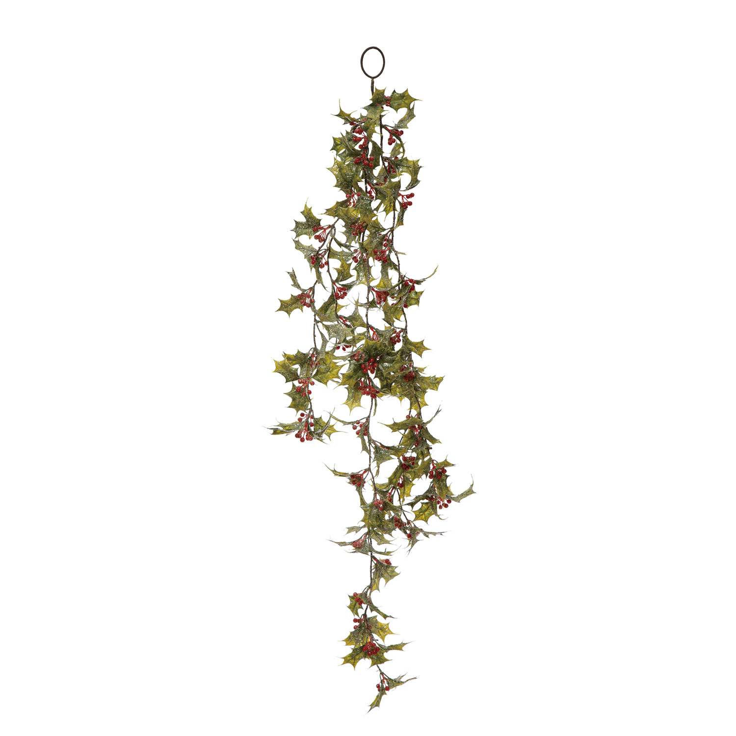 Catalog Name: 49"L Faux Holly Garland with Red Berries and Silver Glitter