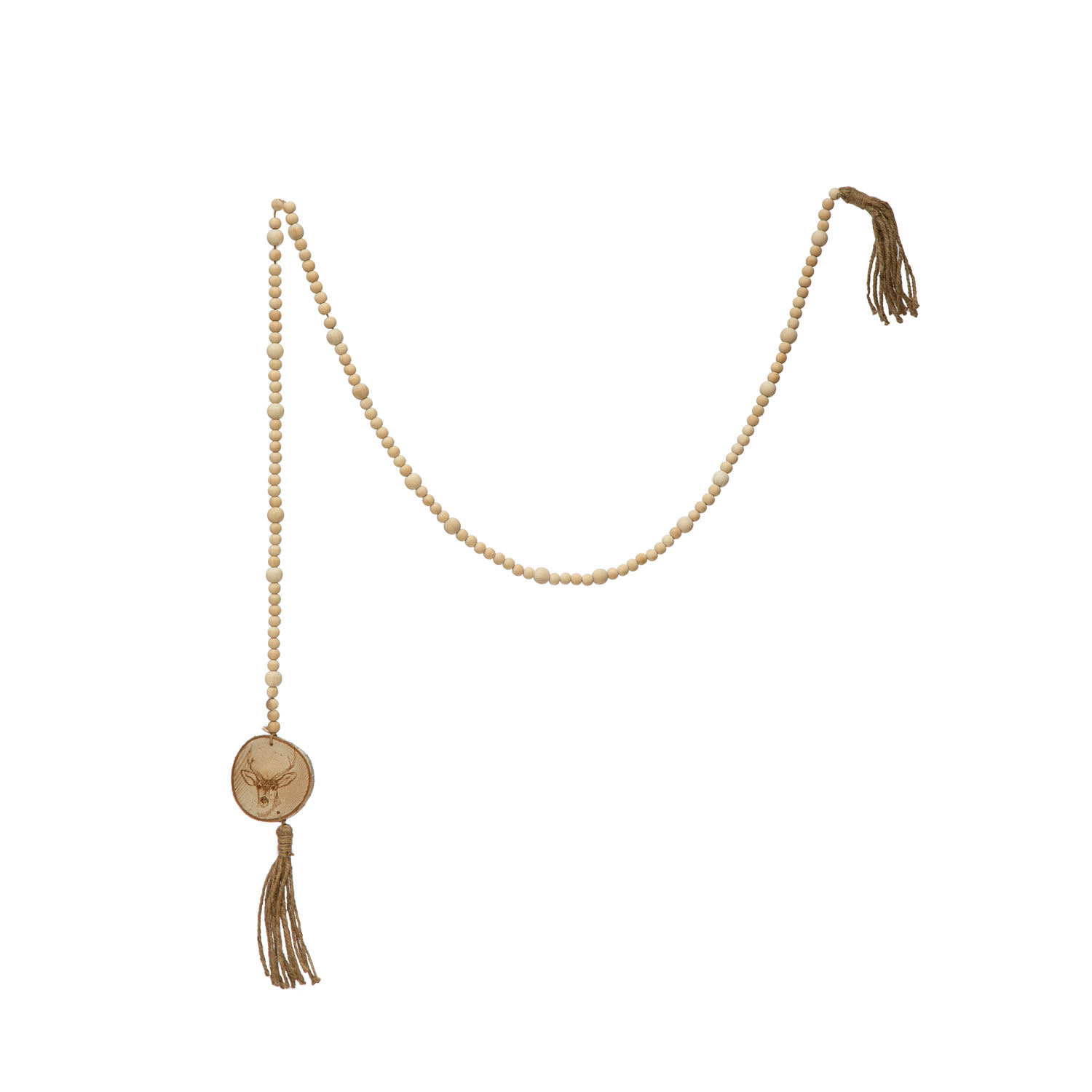 72"L Paulownia Wood Bead Garland with Deer Icon and Tassels