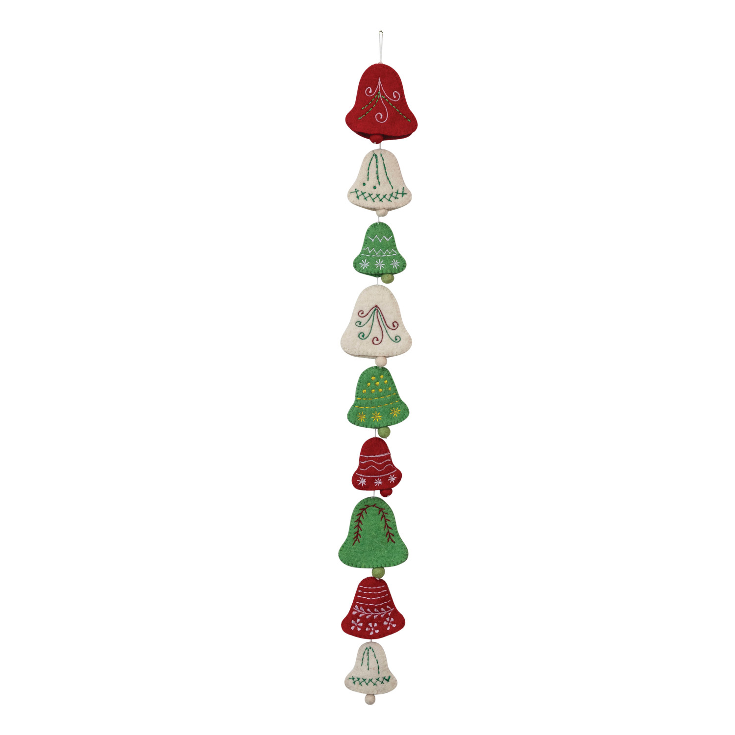 Catalog Name: 72"L Handmade Wool Felt Bell Garland w/ Embroidery, Cream Color, Red & Green