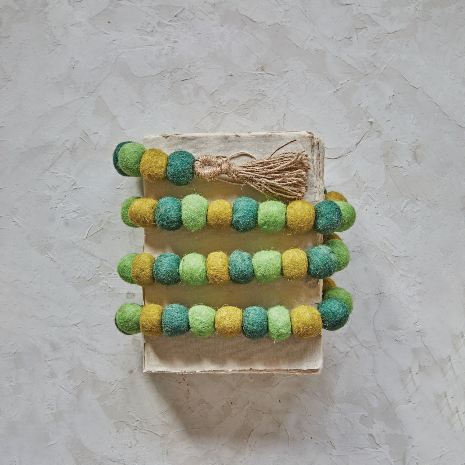 Catalog Name: 72"L Handmade Wool Felt Ball Garland w/ Jute Tassels, Green