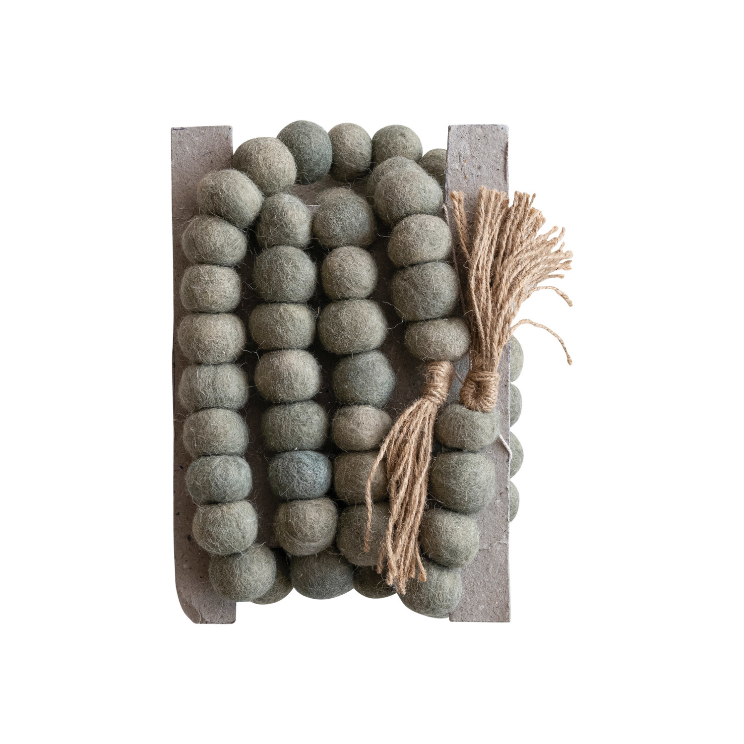 Handmade Wool Felt Ball Garland w/ Jute Tassels, Grey