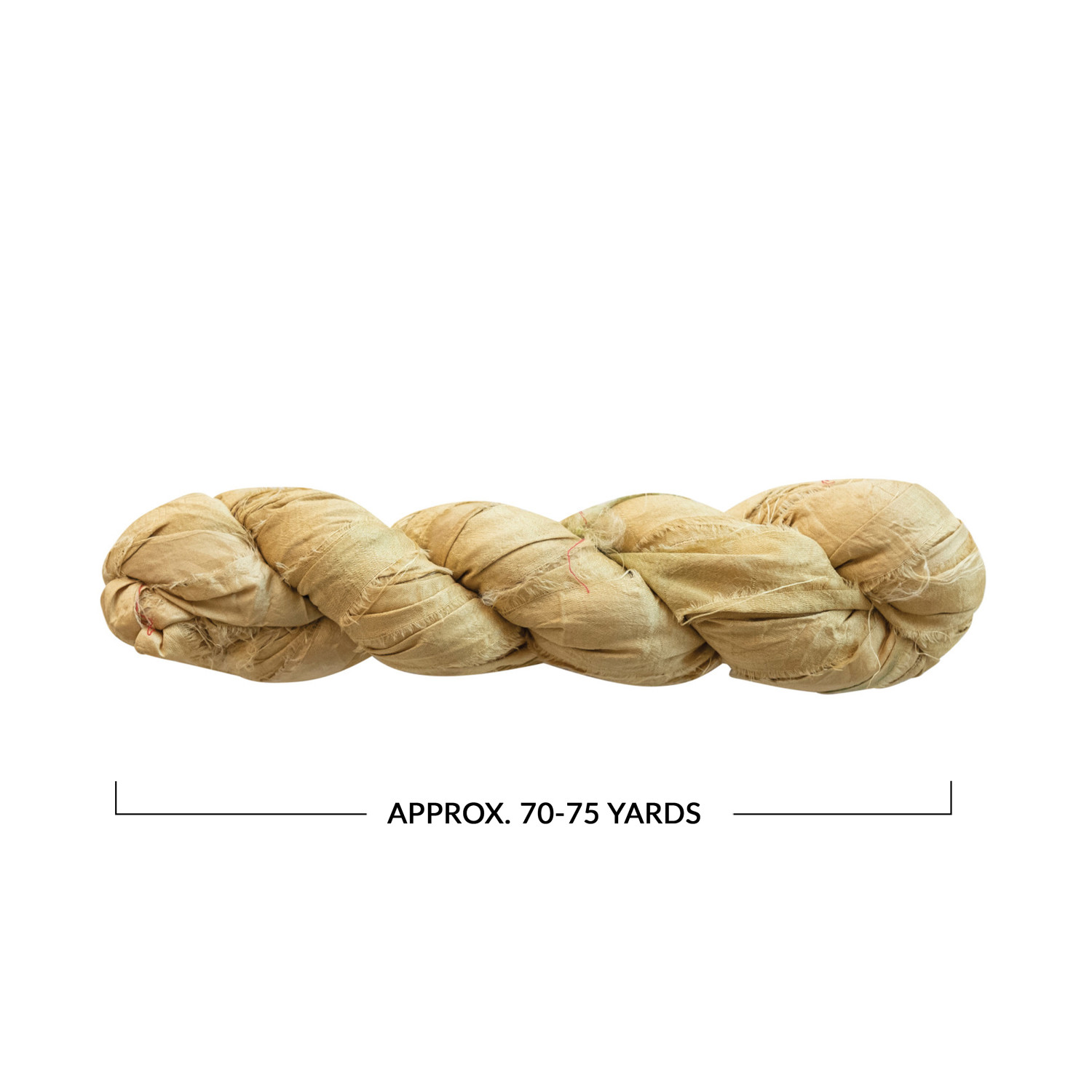 Catalog Name: Approximately 70-75 Yard Recycled Torn Silk Ribbon, Khaki Color (Each One Will Vary)
