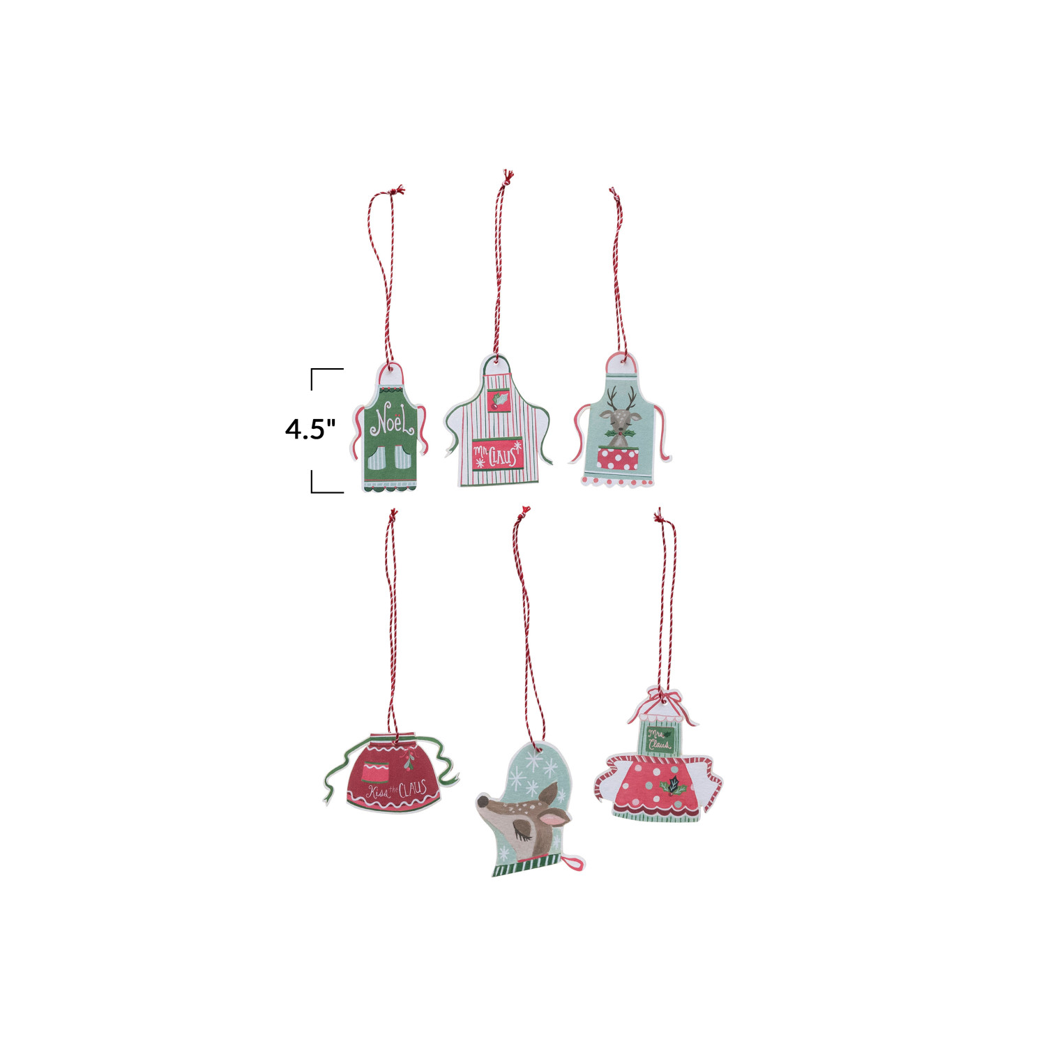 Catalog Name: 4-1/2"H Printed Paper Apron/Hot Mitt Gift Tags/Ornaments, Multi Color, Set of 6 ©