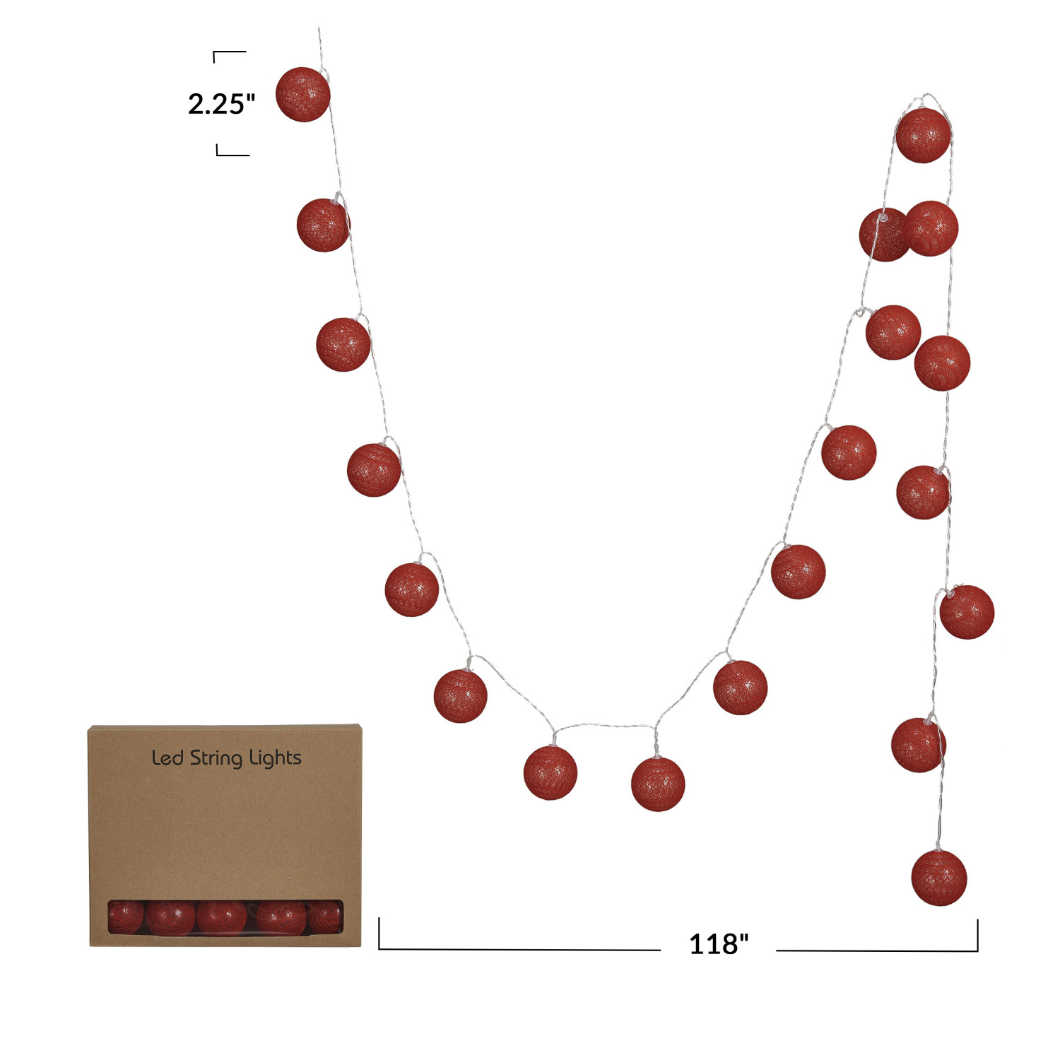 Catalog Name: 118"L x 2-1/4"H Plastic Ball LED String Light w/ 20 Lights, Burgundy (Requires 2-AA Batteries)