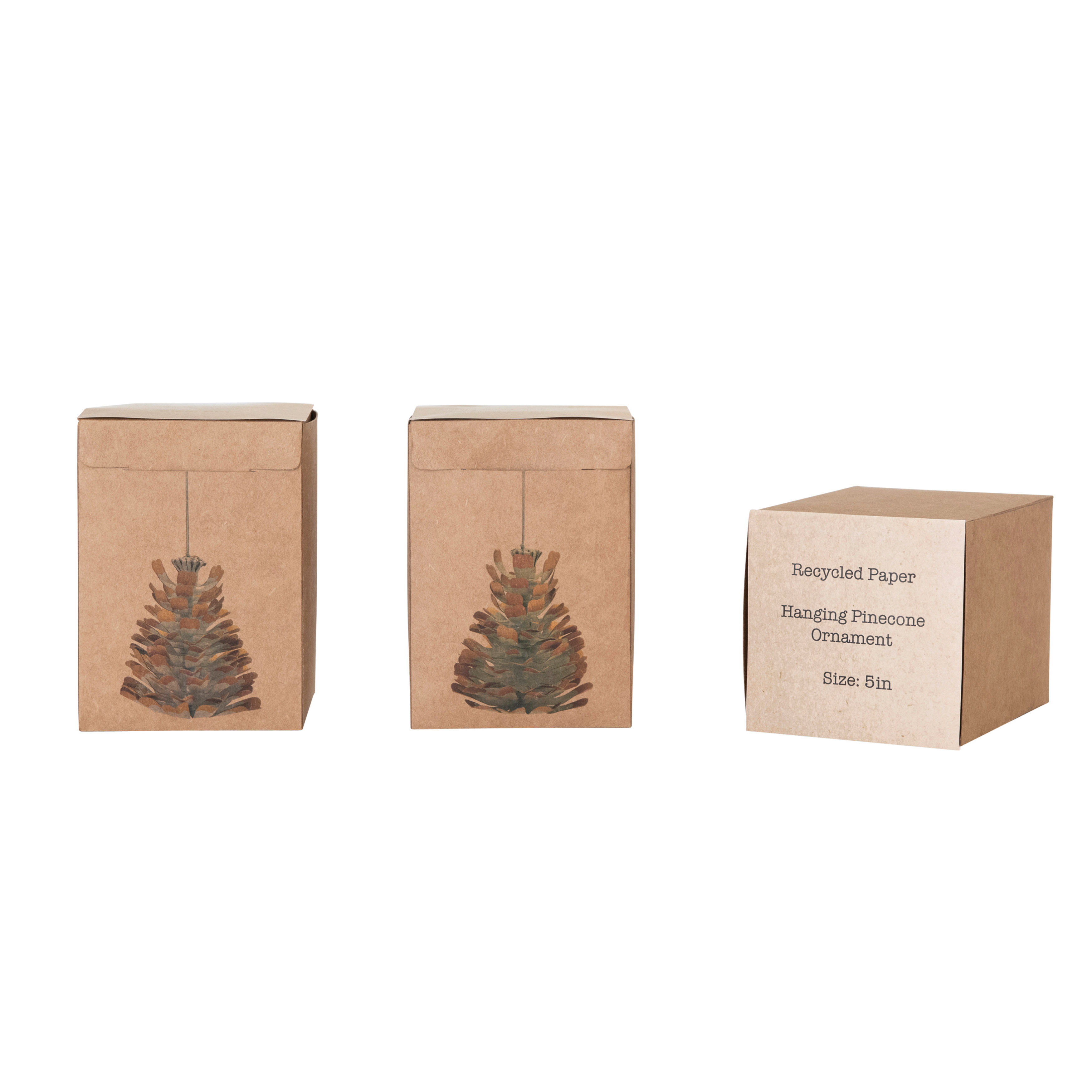 Catalog Name: 5"H Handmade Recycled Paper Pinecone Ornament in Box, 3 Colors