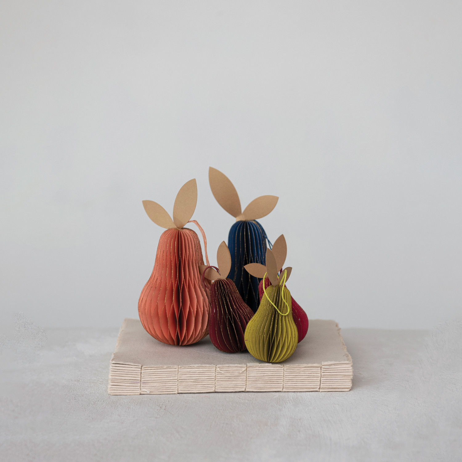 3"H Handmade Recycled Paper Folding Honeycomb Pear Ornament w/ Glitter, 3 Colors