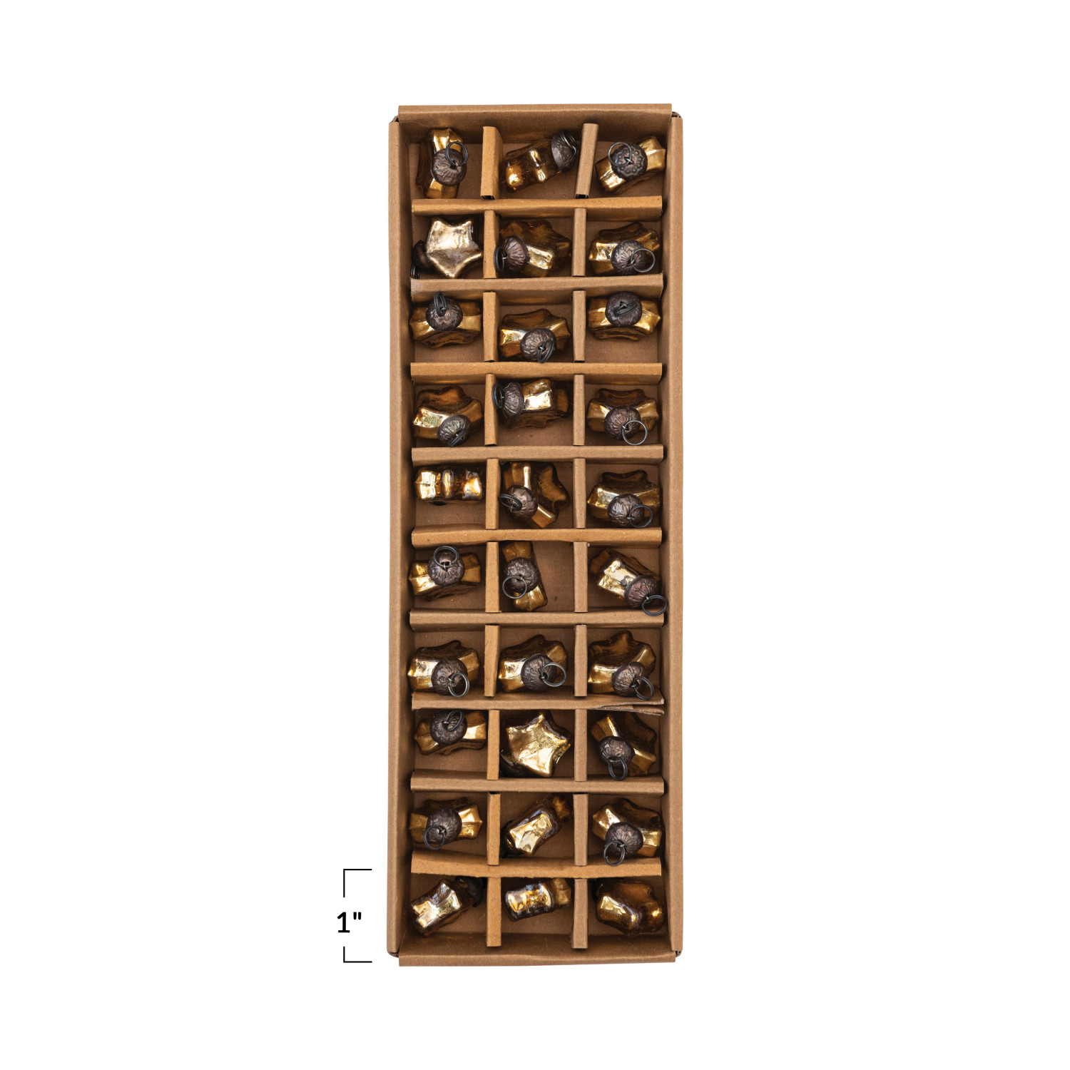 1"H Glass Star Ornaments in Kraft Box, Gold Finish, Set of 30