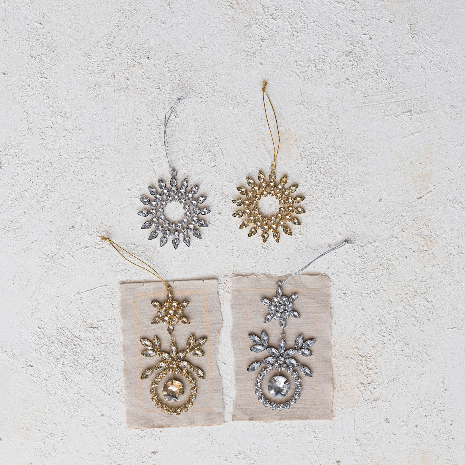 This metal and acrylic jewel ornament is a dazzling and elegant way to add some personality and flair to the home. The ornament features a metal frame with a geometric shape, embellished with acrylic jewels that reflect light and create a sparkling effect. The ornament has a gold or silver color that gives it a sophisticated and stylish look. The ornament has a loop for easy hanging. Decorate the tree, window, or wall, or use it as a gift or a favor, as this ornament will bring a touch of sophistication and style to any space. It also makes a great gift for friends and family who love jewels, metal, or geometric crafts. A dazzling and elegant ornament with metal frame, acrylic jewels, and gold or silver color. A sophisticated and stylish accessory for any modern, classic, or festive style decor. Ideal for hanging on the tree, window, or wall, or using as a gift or a favor.