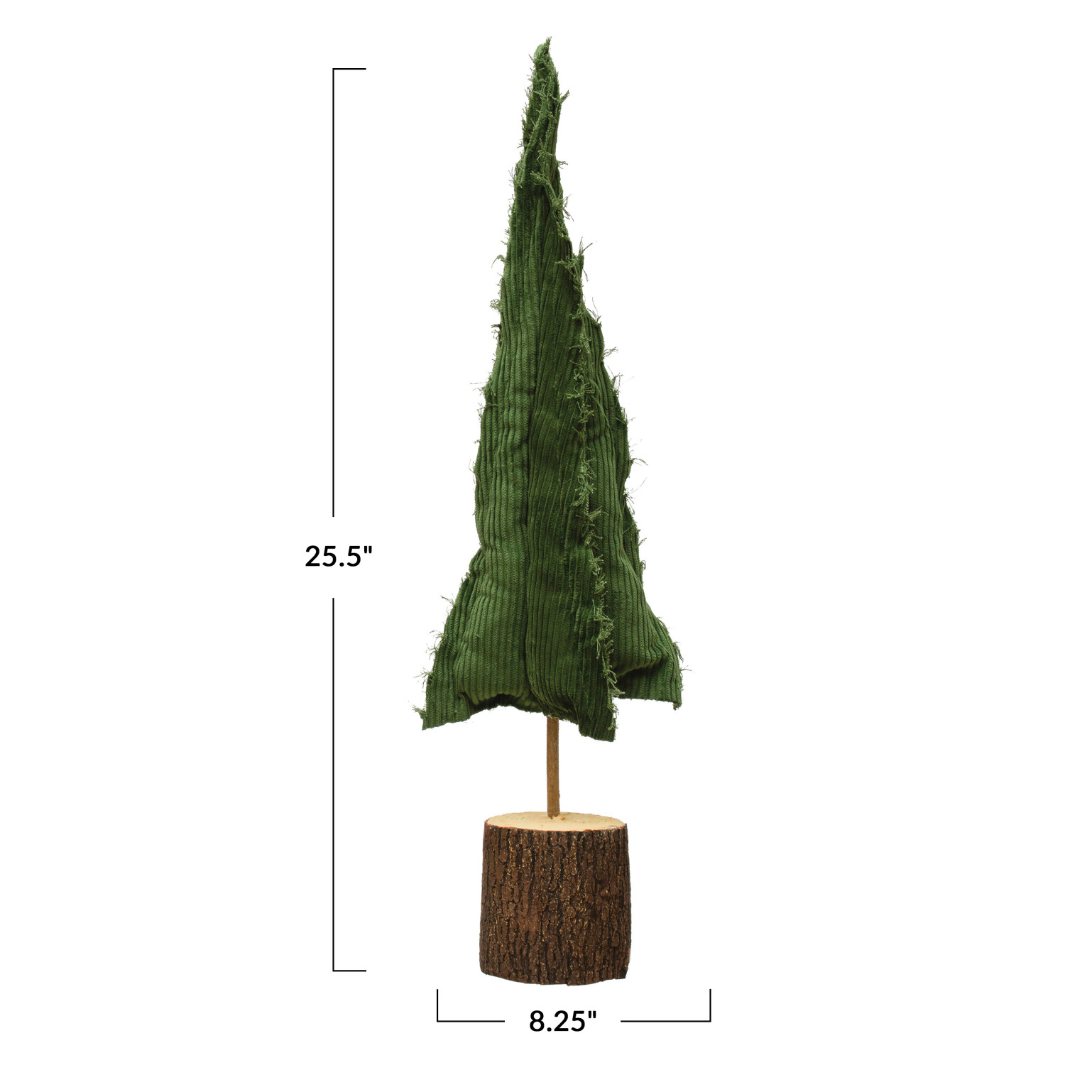 8-1/4" Round x 25-1/2"H Raw-Edged Corduroy Tree w/ Wood Slice Base, Green