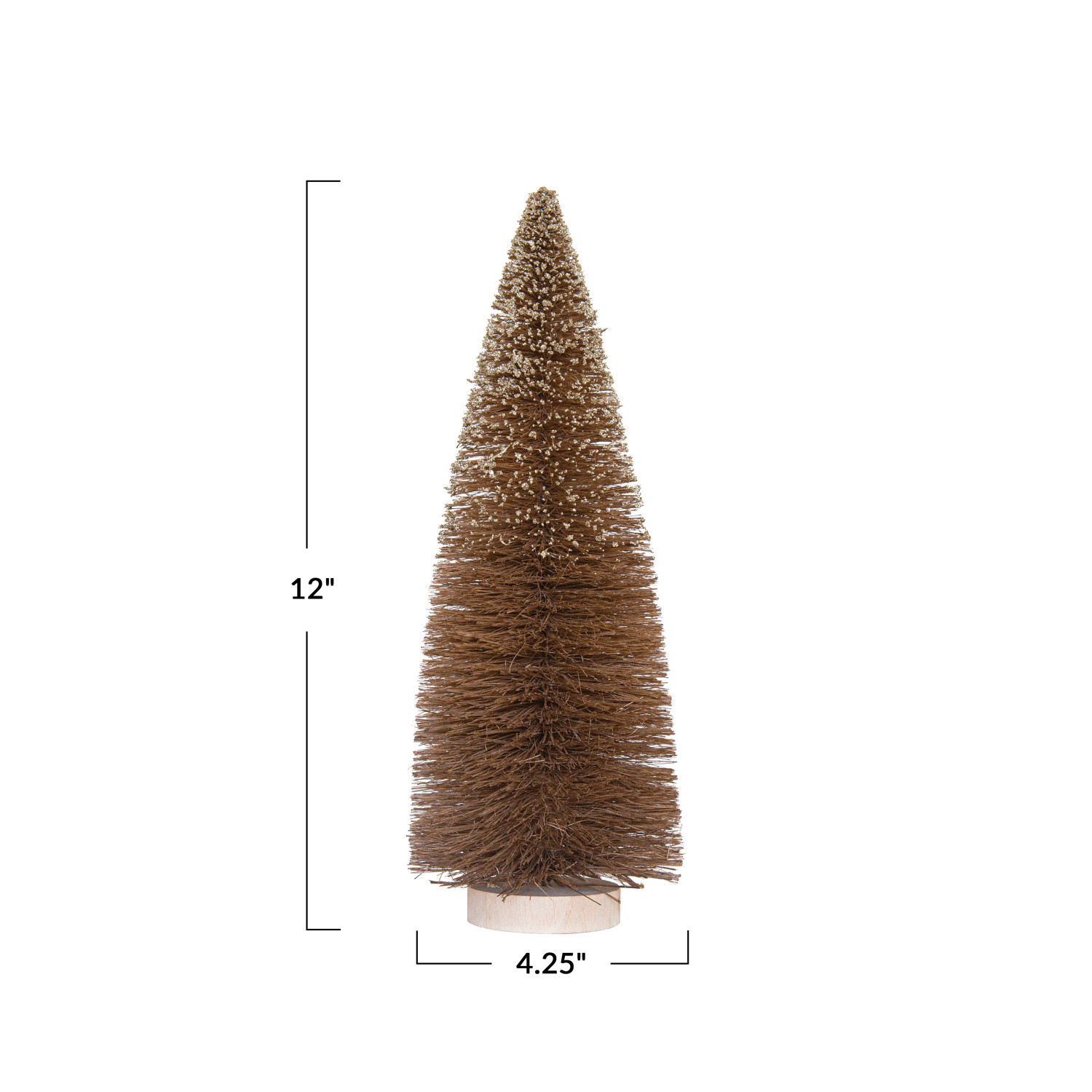 4-1/4" Round x 12"H Sisal Bottle Brush Tree w/ Glitter & Wood Base, Brown