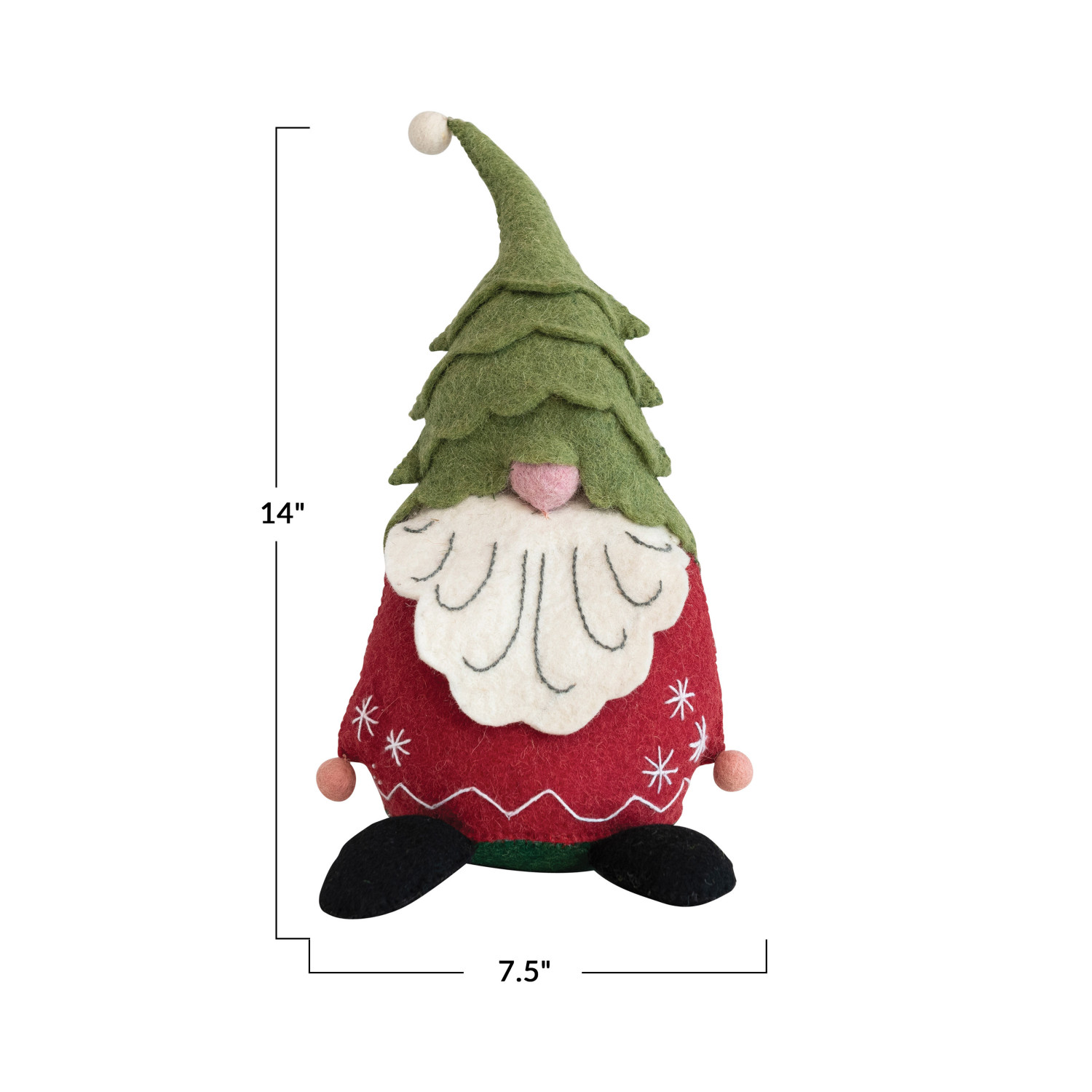 7-1/2"L x 7"W x 14"H Handmade Wool Felt Gnome, Multi Color