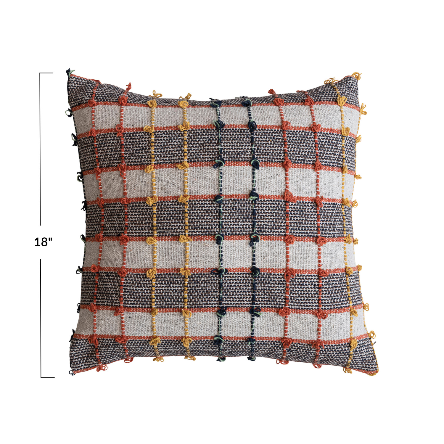 Catalog Name: 18" Square Woven Cotton Blend Pillow w/ Knots, Multi Color Plaid