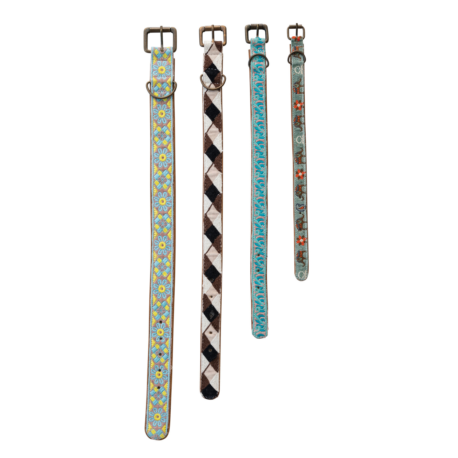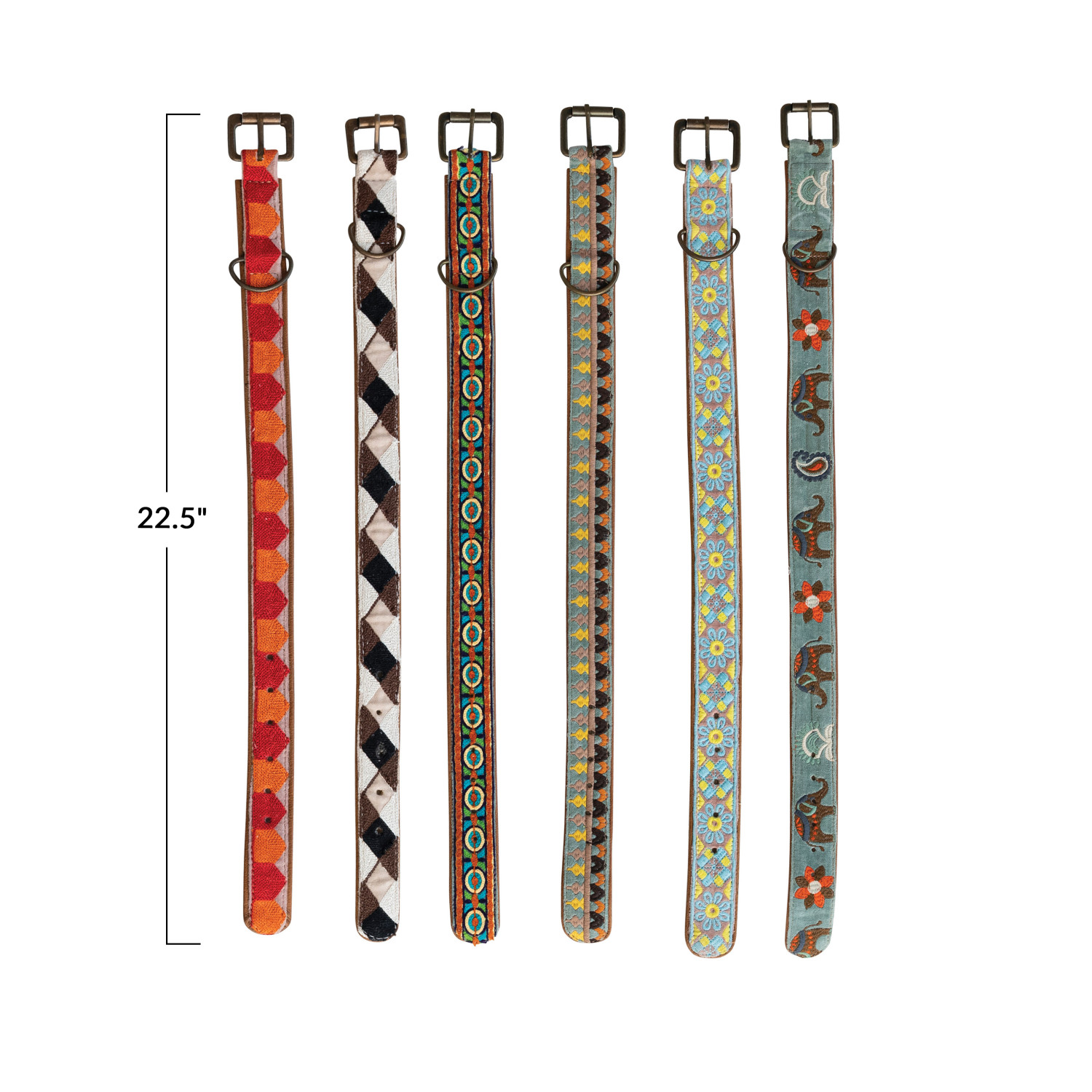 Catalog Name: 22-1/2"L x 1-1/4"W Cotton & Leather Dog Collar w/ Embroidery & Metal Buckle, Multi Color, 6 Styles, Medium