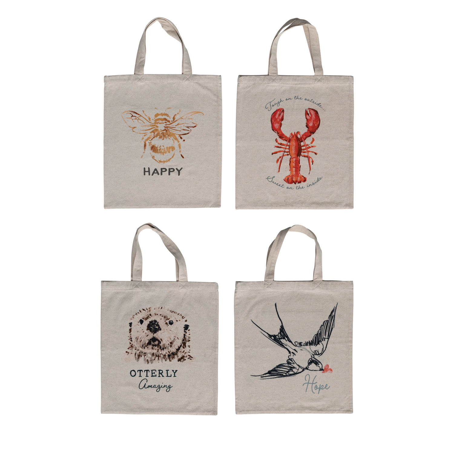 Catalog Name: 15"L x 17"H Cotton & Linen Printed Tote Bag w/ Animal/Saying, Handles, Interior Pocket & Lining, Multi Color, 4 Styles ©