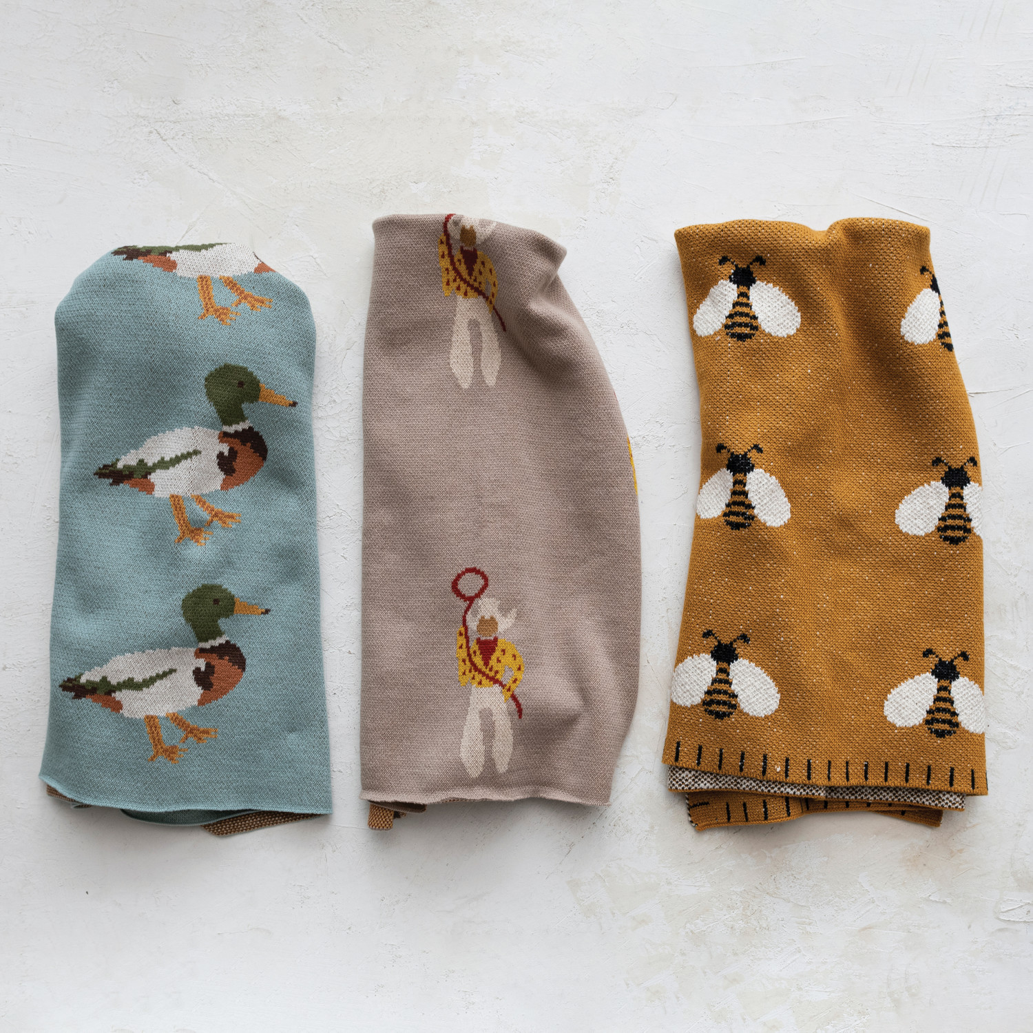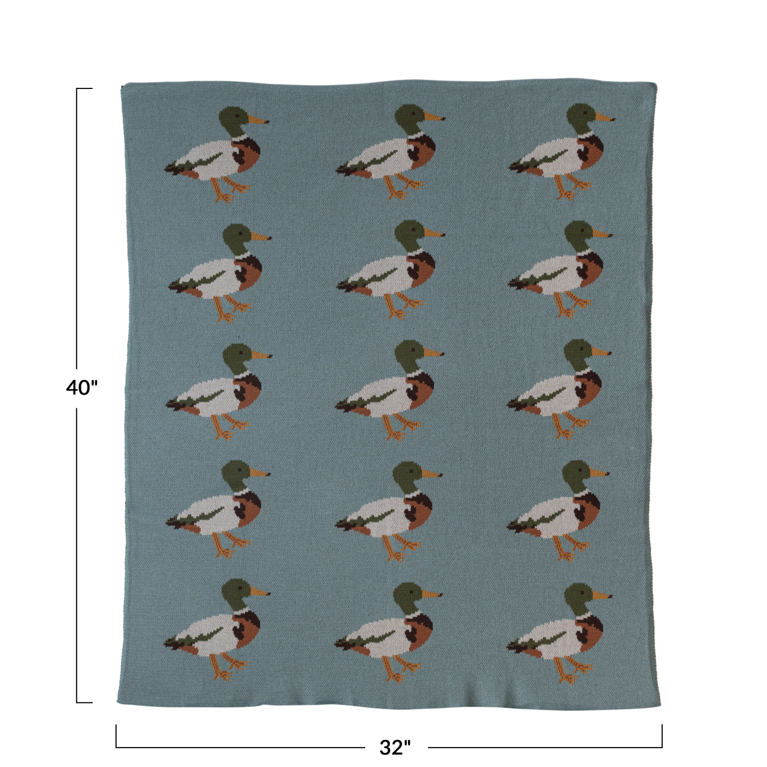 Catalog Name: 40"L x 32"W Cotton Knit Baby Blanket w/ Ducks, Multi Color ©