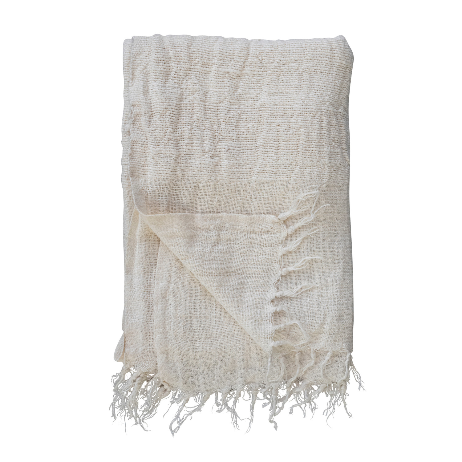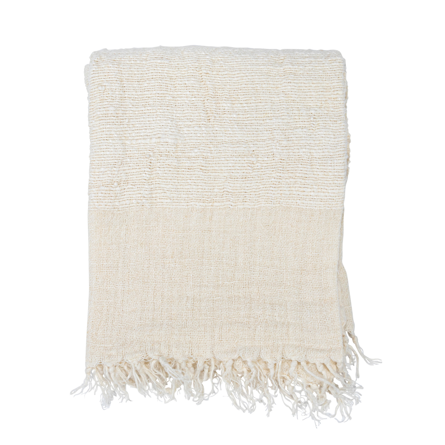 Catalog Name: 60"L x 50"W Woven Linen Throw w/ Stripes & Fringe, Cream Color & Natural