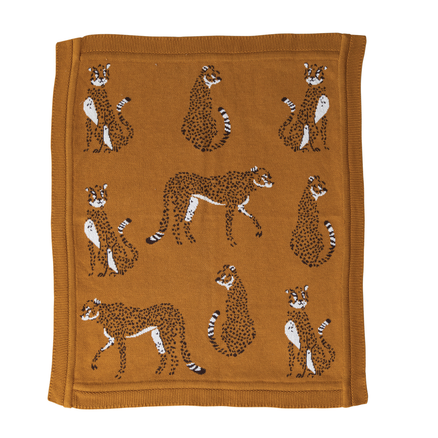 Catalog Name: 40"L x 32"W Cotton Knit Baby Blanket w/ Cheetahs, Mustard Color, Black & White