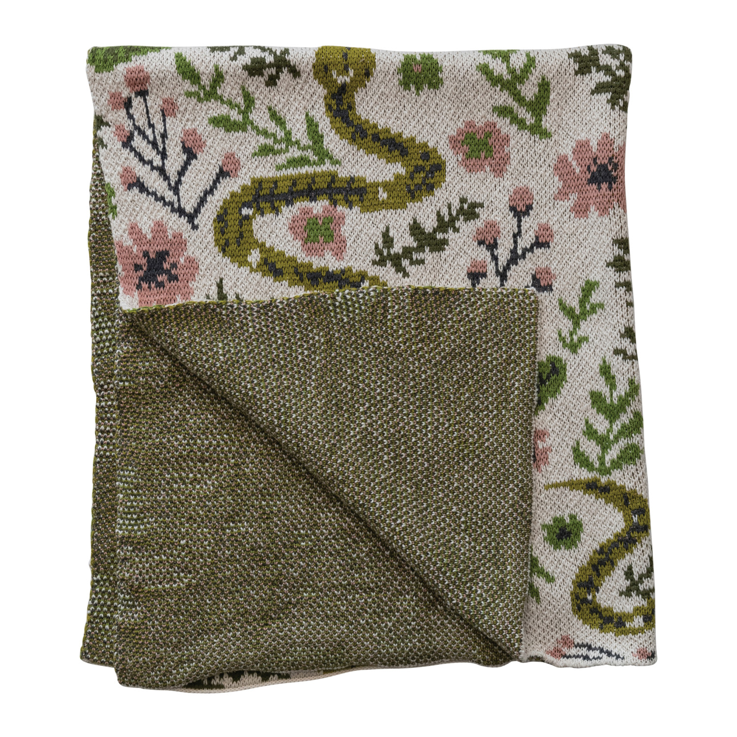 Catalog Name: 40"L x 32"W Cotton Knit Baby Blanket w/ Snakes & Florals, Multi Color