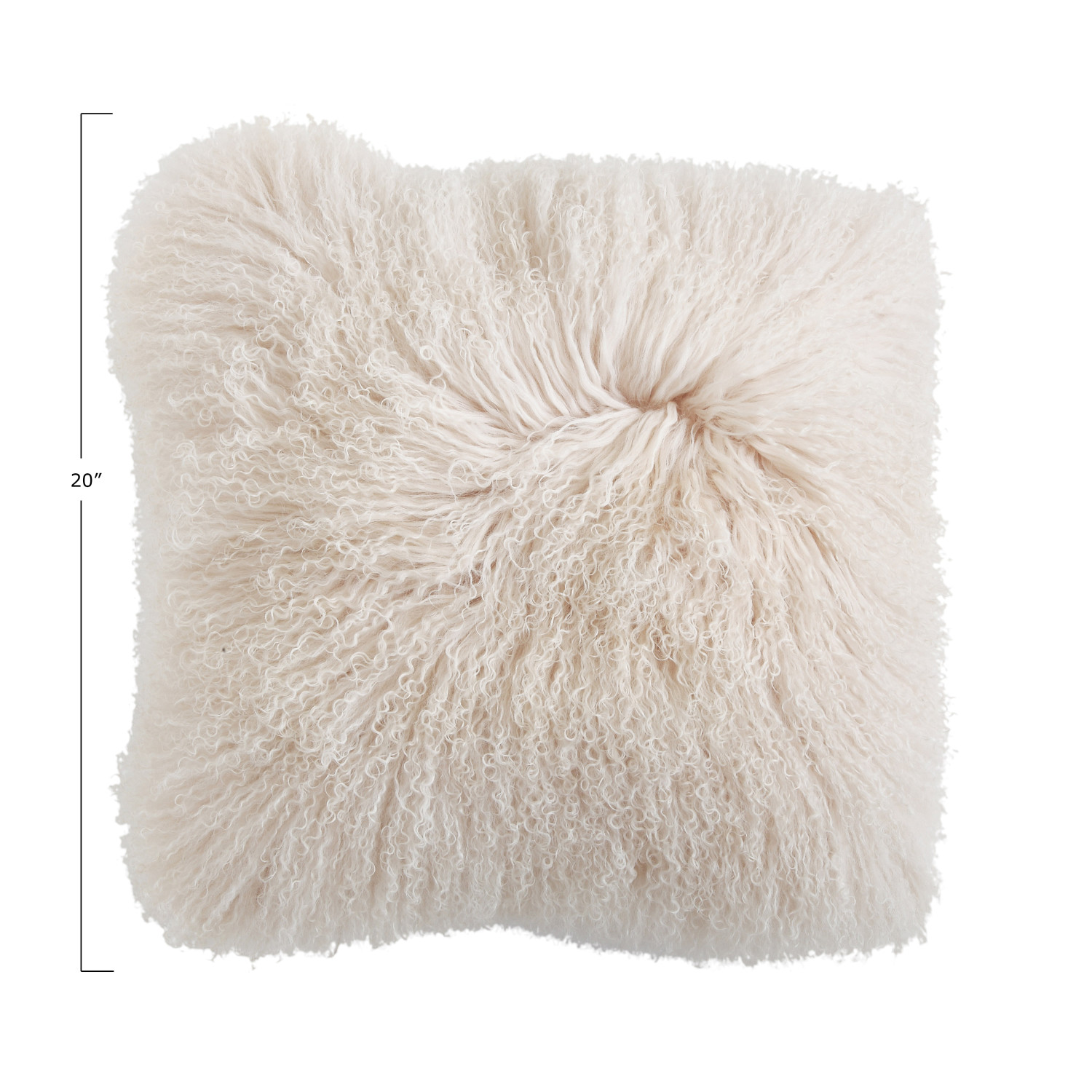Catalog Name: 20" Square Mongolian Lamb Fur Pillow, Cream Color