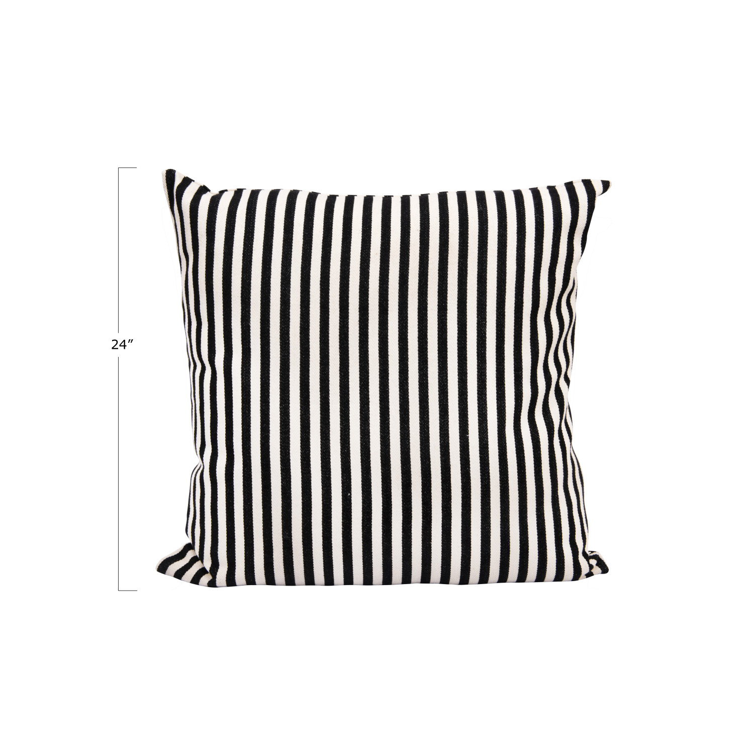 Catalog Name: 26" Square Woven Cotton Striped Pillow, Black & Cream Color