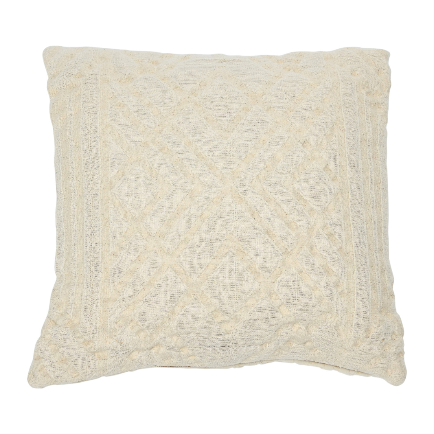 Catalog Name: 18" Square Woven Cotton Jacquard Pillow, Cream Color