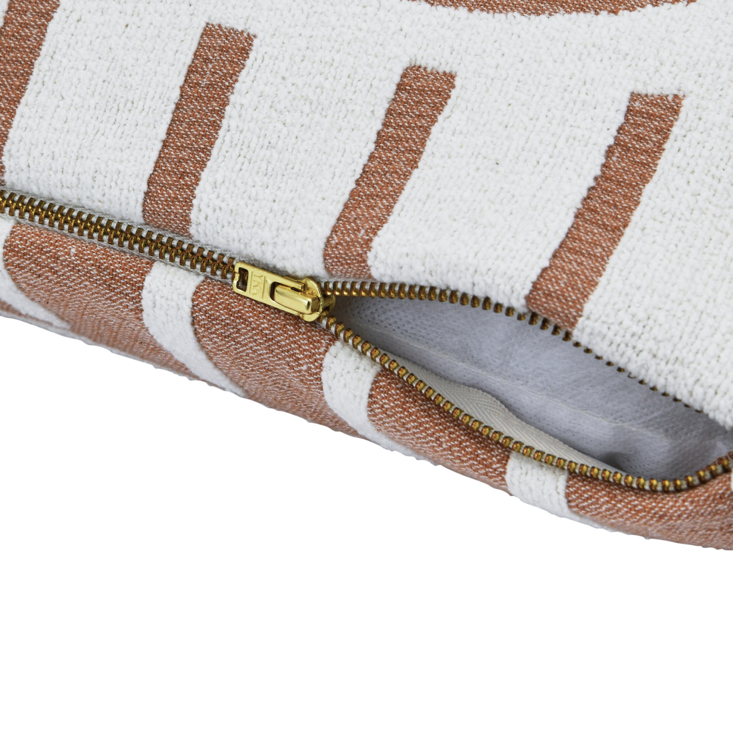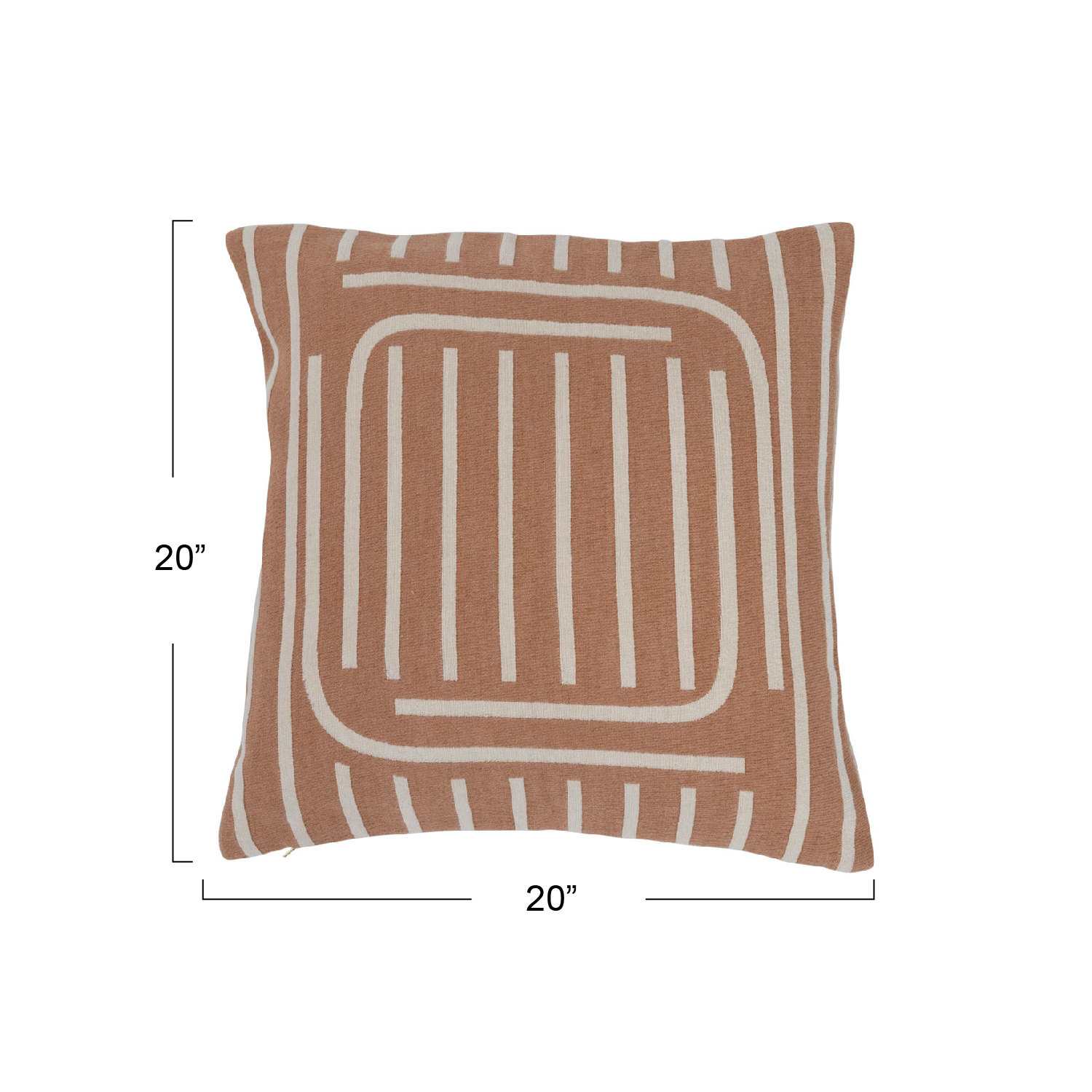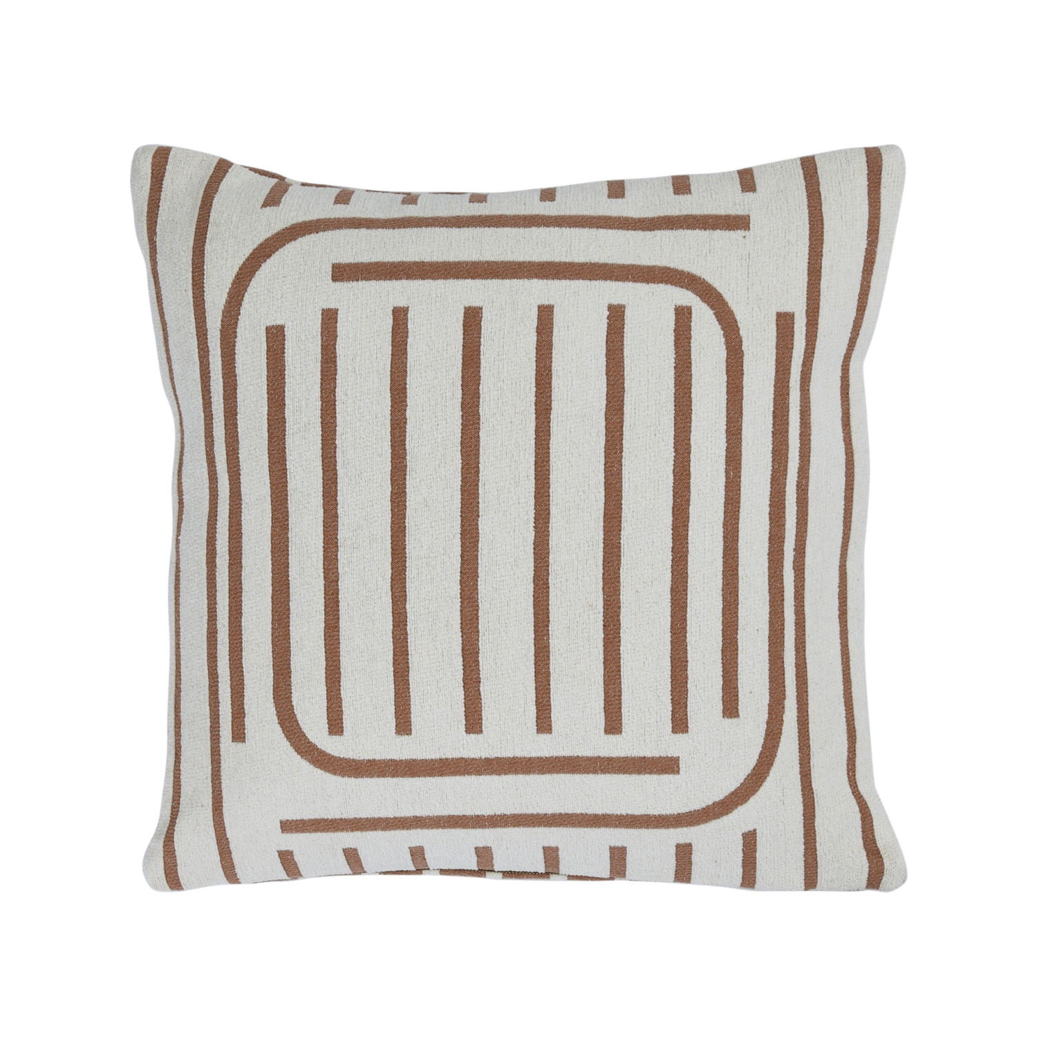 This contemporary throw pillow cover features a geometric line print on durable woven cotton. Square putty and cream cotton throw pillow with geometric line print; Inverse print on back. Express your constantly evolving style with the simple addition of this eye-catching pillow. Removable cotton throw pillow cover with polyester insert; Hidden in seam zipper closure; Machine wash cold, gentle cycle, do not bleach, warm iron if needed.
