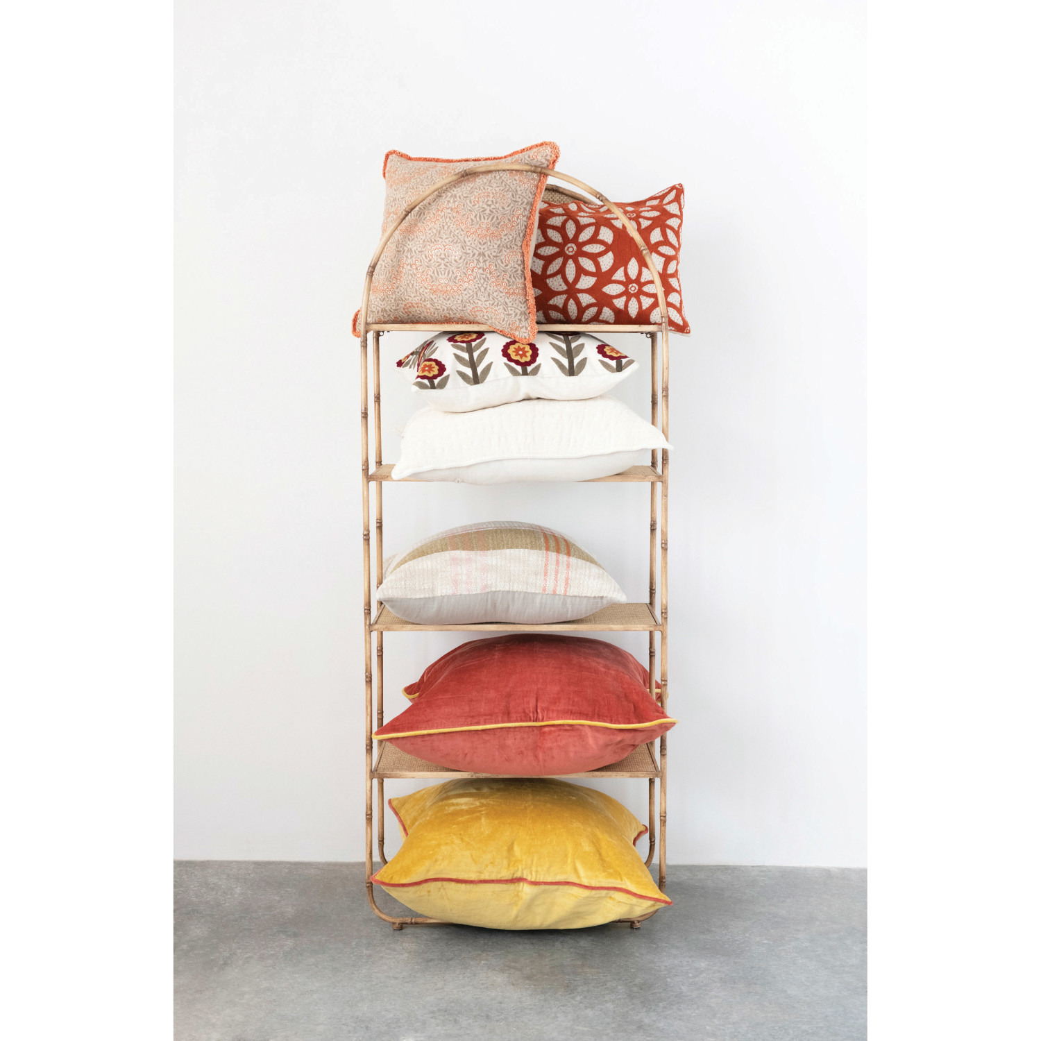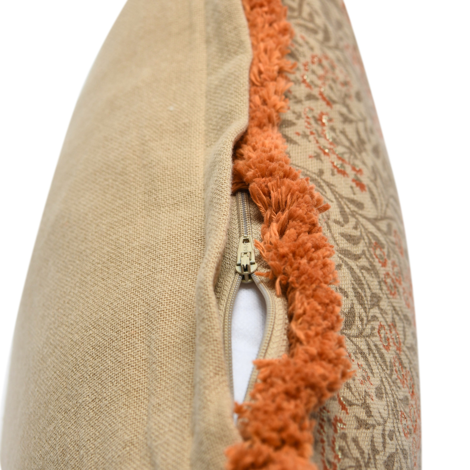 Catalog Name: 16" Square Cotton Pillow w/ Metallic Printed Floral Pattern & Eyelash Fringe, Multi Color