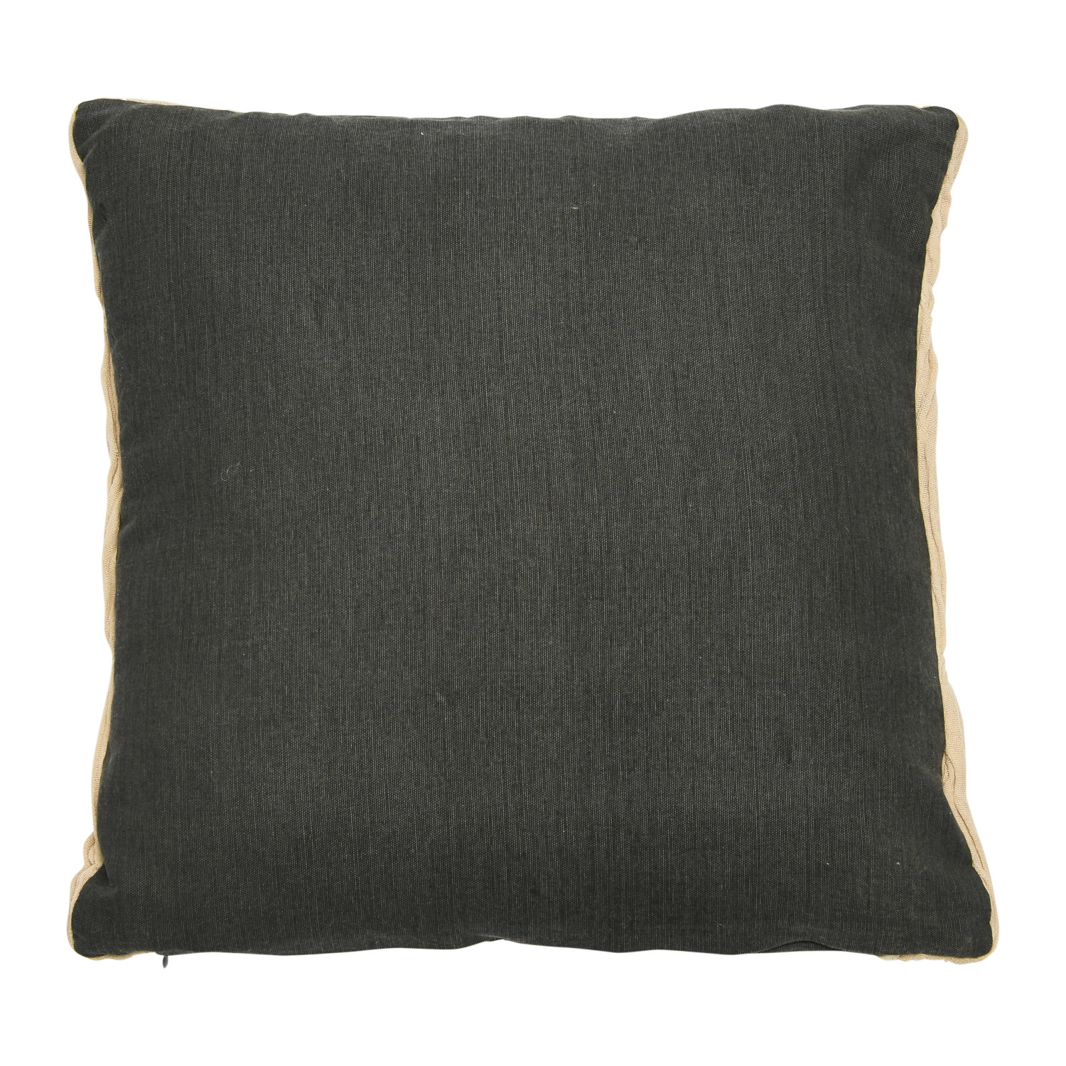This contemporary, textured throw pillow cover features an embroidered geometric pattern and delicate applique on cotton. Square charcoal and tan throw pillow with embroidered pattern on cotton; Charcoal chambray on back. Express your constantly evolving style with the simple addition of this eye-catching pillow. Removable cotton throw pillow cover with polyester insert; Hidden in seam zipper closure; Hand wash, do not bleach, do not tumble dry, do not dry clean, medium iron (do not iron on trim).