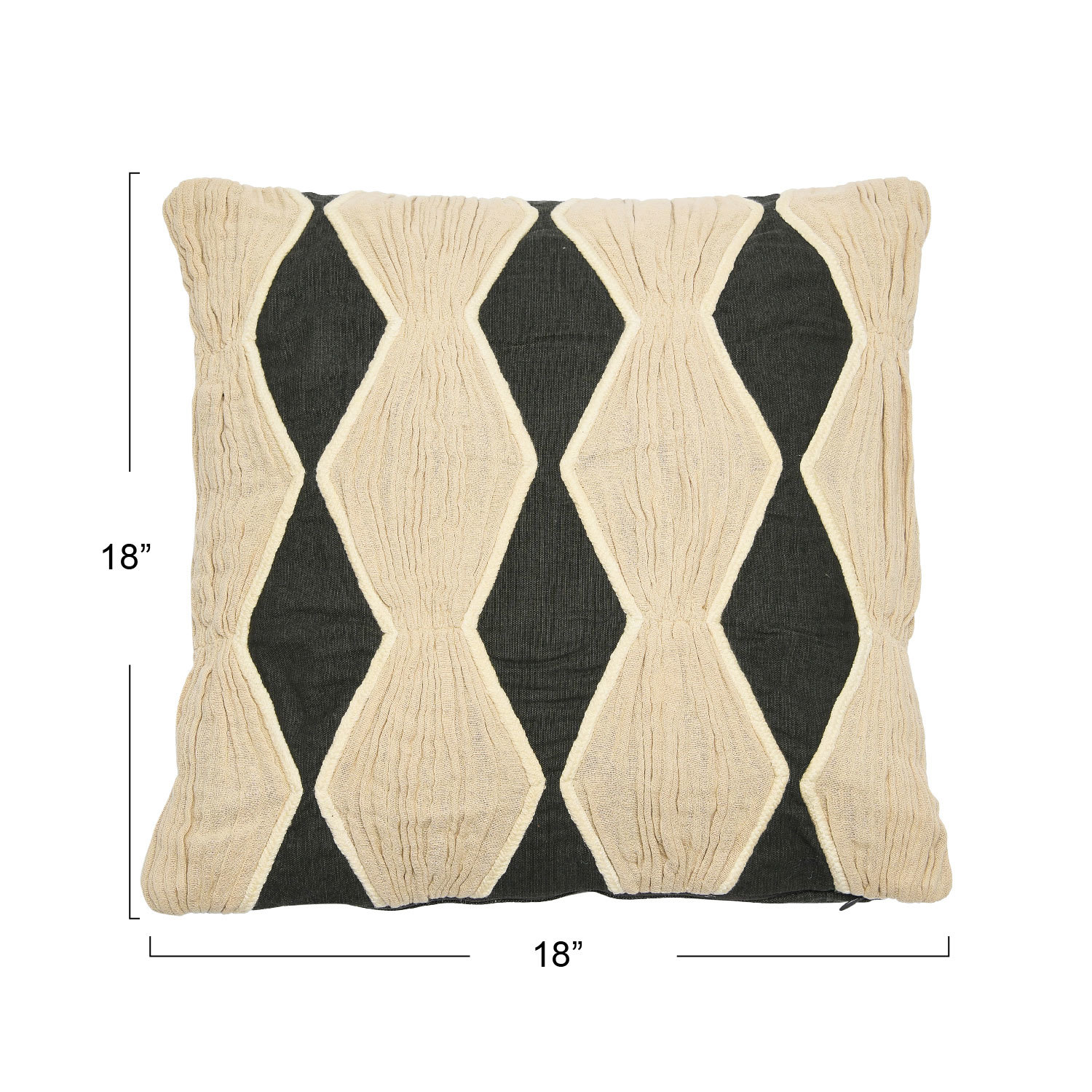 18" Cotton Pillow w/ Applique & Diamond Pattern, Polyester Fill