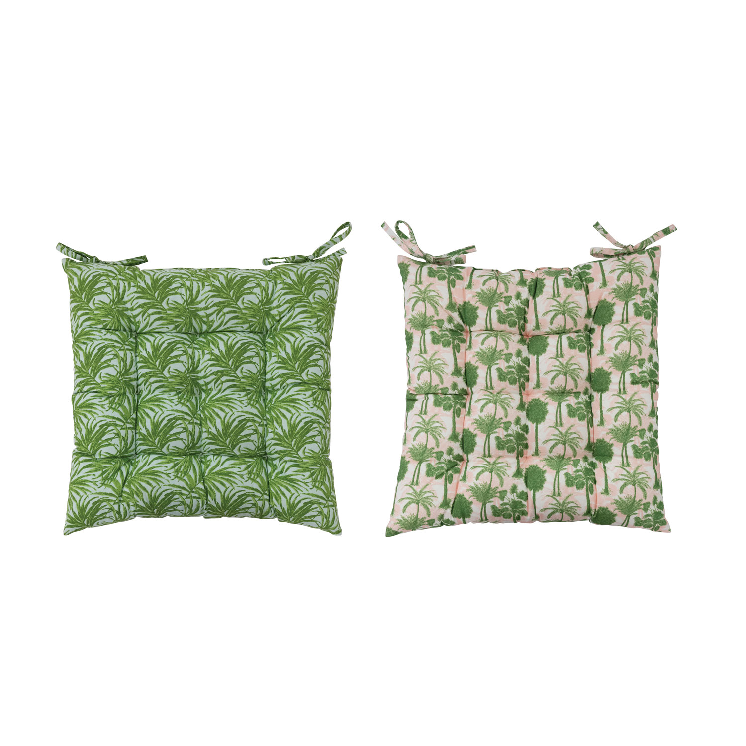 18" Cotton Printed Chair Cushion with Palm Patterns, 2 Styles