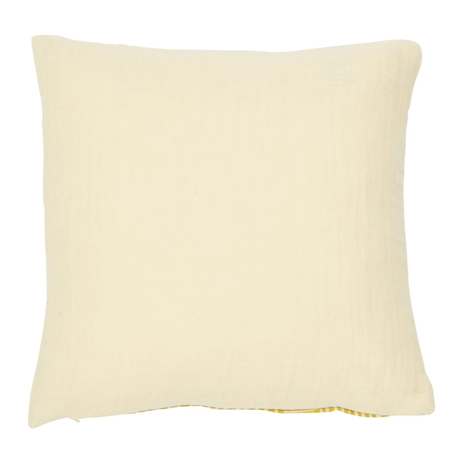 This contemporary throw pillow showcases an intricate kuba cloth pattern on cotton. Square cotton throw pillow with kuba cloth pattern in mustard; Natural pleated cotton encasement on back. Express your constantly evolving style with the simple addition of this eye-catching pillow. Removable cotton throw pillow cover and insert; Hidden in seam zipper closure; 30 degree wash, do not bleach, tumble dry low; Do not dry clean, do not iron.