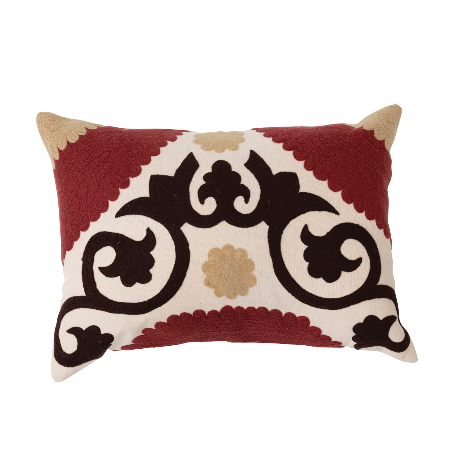 This global-inspired lumbar pillow features intricate suzani embroidery on durable woven cotton. Multicolor cotton lumbar pillow with suzani embroidery; Natural cotton encasement on back. Express your constantly evolving style with the simple addition of this eye-catching pillow. Removable lumbar pillow cover and insert; Back zipper with hidden flap; Machine wash cold, gentle cycle, do not bleach, warm iron if needed.
