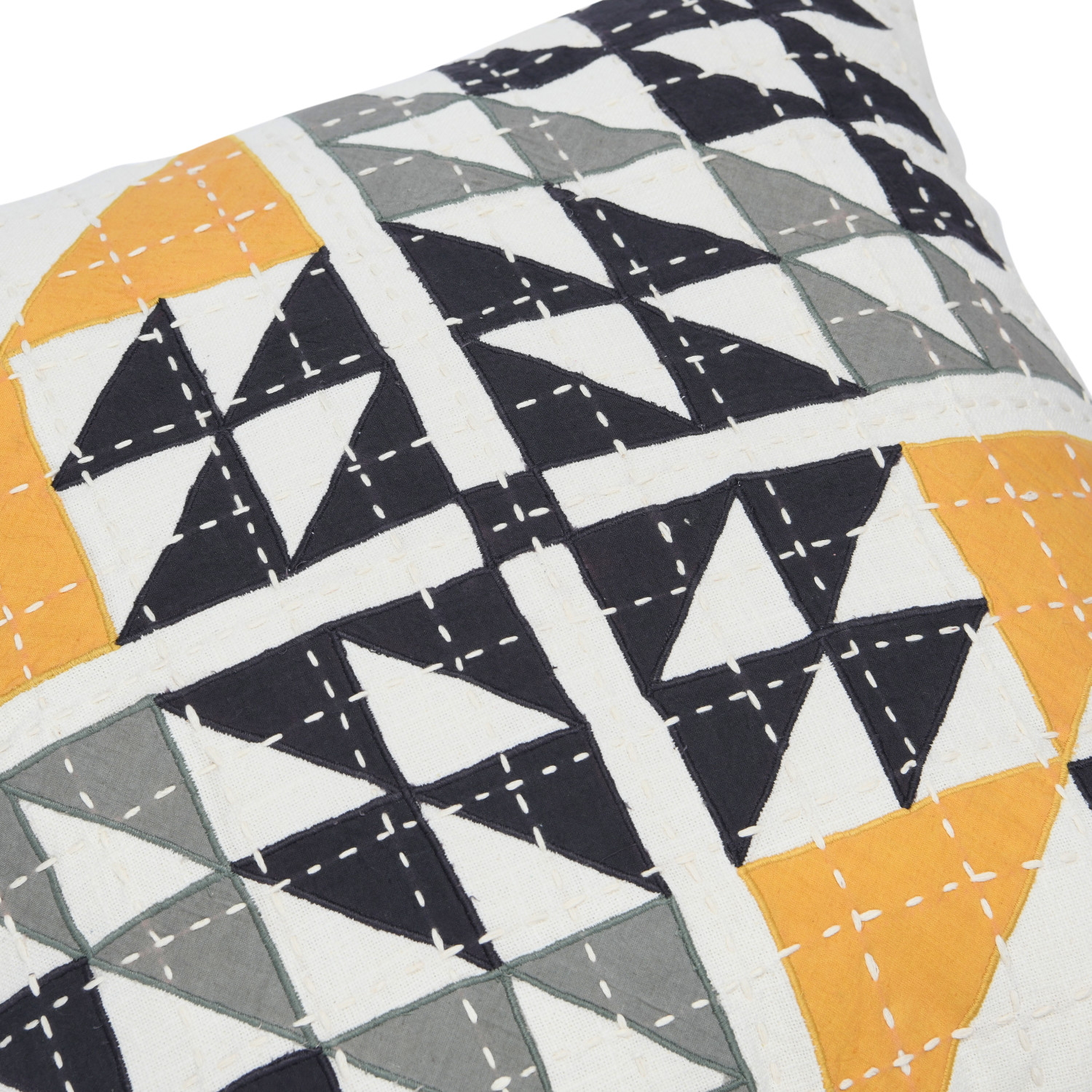 This bold cotton patchwork throw pillow cover features multicolor quilted embroidery with a stylish kantha stitch. Square multicolor cotton patchwork throw pillow with kantha stitch; Natural cotton encasement on back. Express your constantly evolving style with the simple addition of this eye-catching pillow. Removable throw pillow cover with polyester insert; Back zipper with hidden flap; Dry clean only.