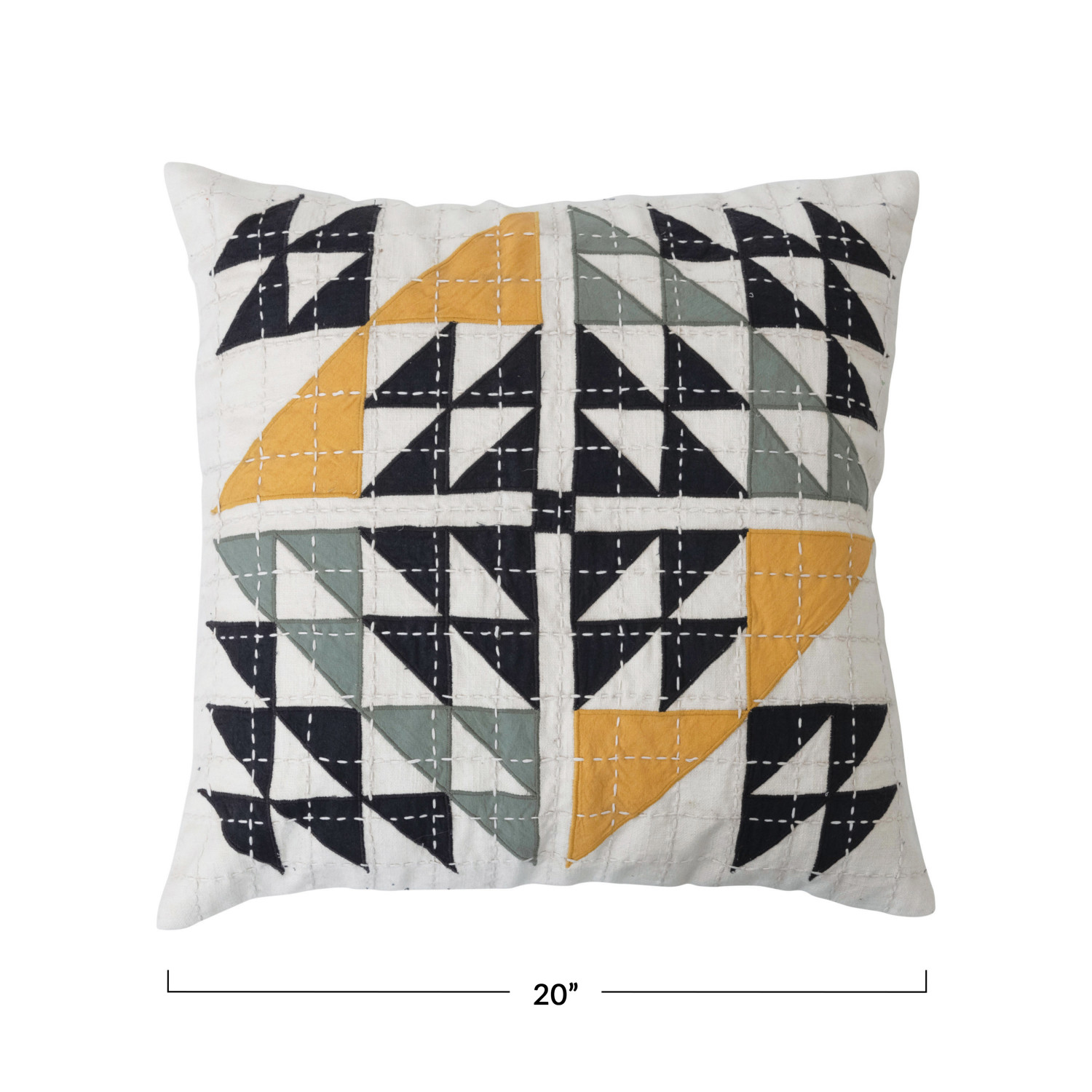 Catalog Name: 20" Square Cotton Patchwork Pillow w/ Hand-Embroidered Kantha Stitch, Multi Color