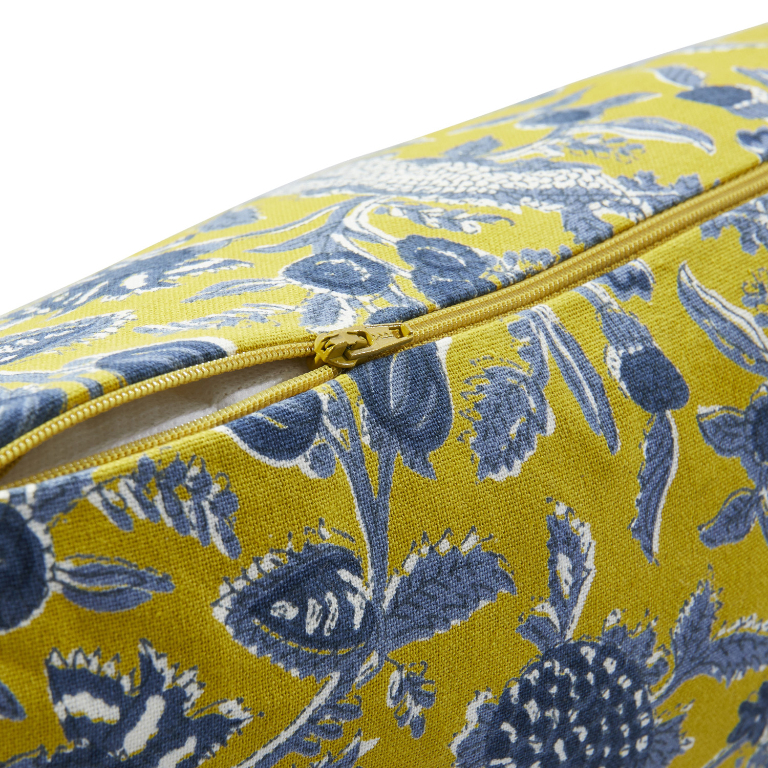 This whimsically farmhouse throw pillow cover features a bold floral pattern on cotton, finished with decorative yarn-wrapped tassels. Square blue, chartreuse, and white cotton throw pillow with floral print and yarn-wrapped tassels. Express your constantly evolving style with the simple addition of this eye-catching pillow. Removable cotton throw pillow cover with polyester insert; Hidden in seam zipper closure; Machine wash warm, gentle cycle, do not bleach; Tumble dry low, warm iron if needed or hand wash.