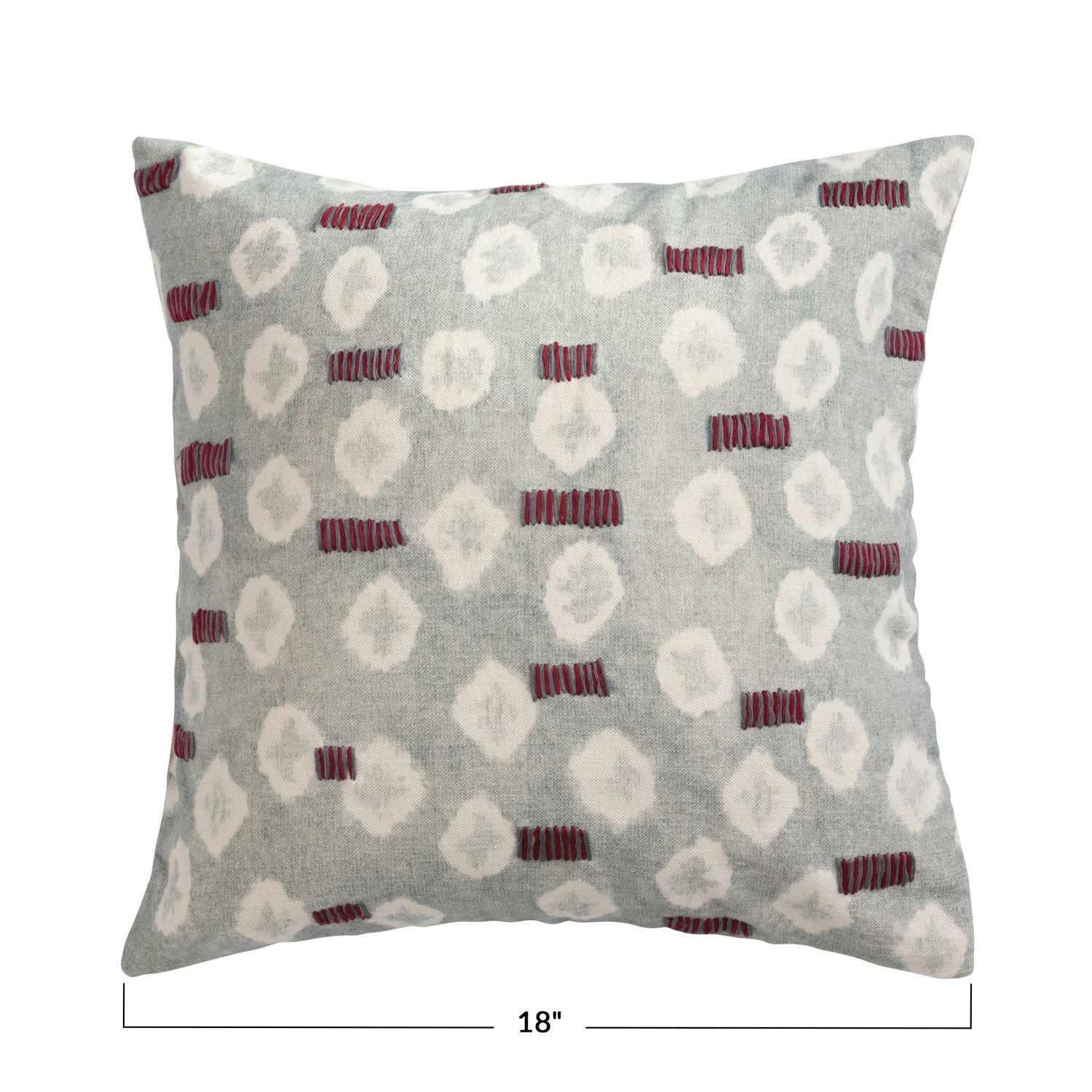 18" Linen Printed Pillow w/ Hand-Embroidery & Chambray Back, Polyester Fill