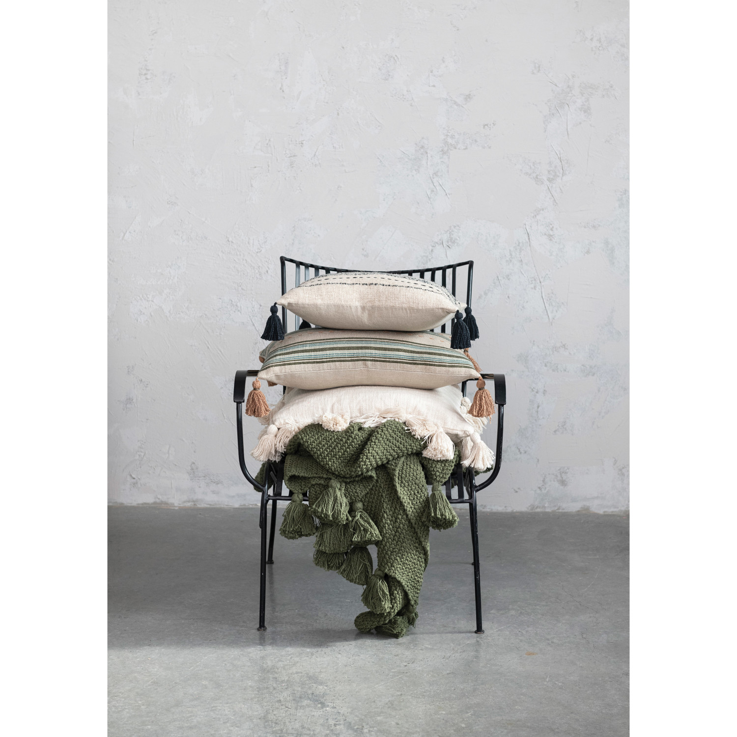 Catalog Name: 18" Square Cotton & Linen Blend Pillow w/ Hand-Embroidered Stripes, Chambray Back & Tassels, Natural, Black & Green