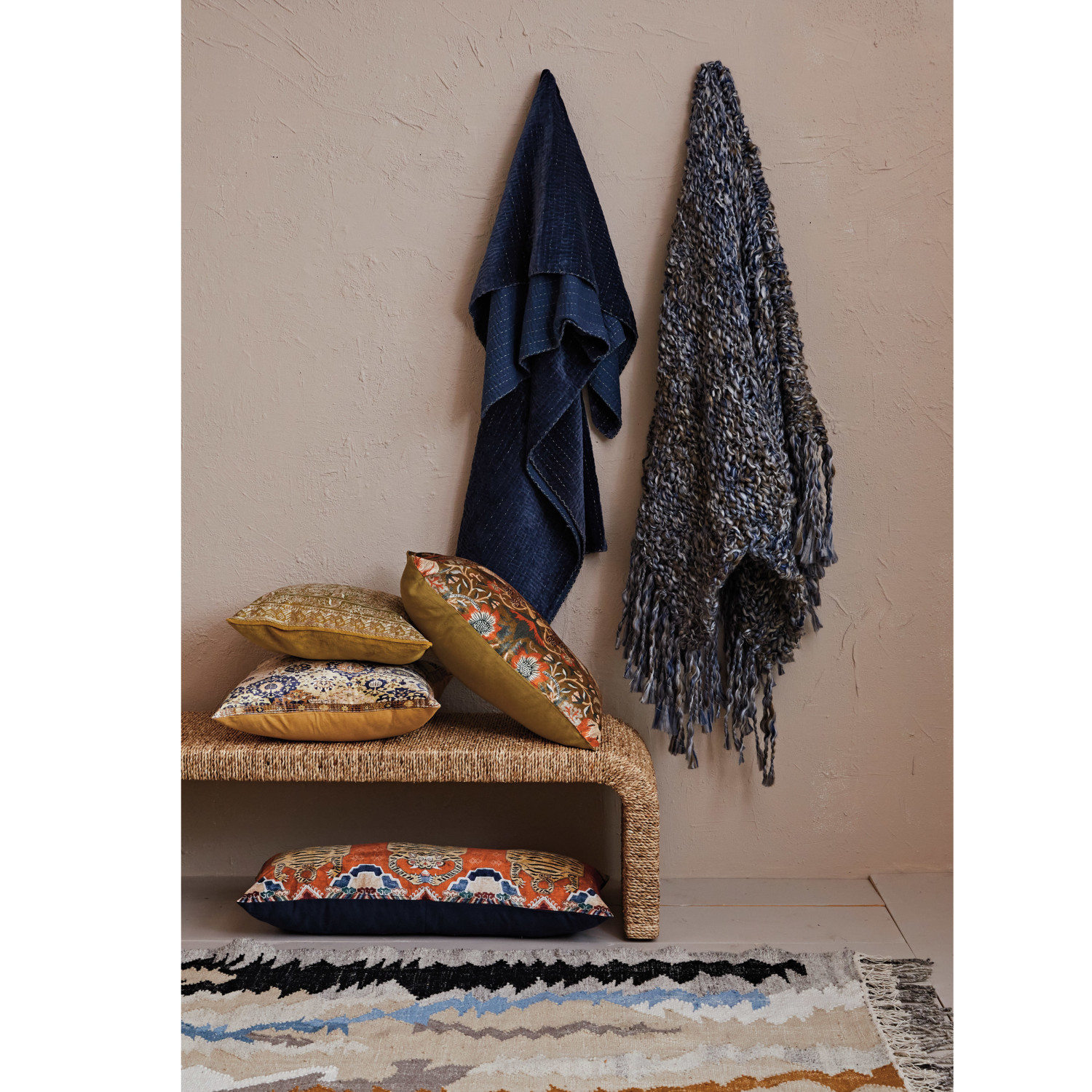 This cotton velvet birds and flowers lumbar pillow is a beautiful accessory that will add elegance and joy to any space. The pillow features a printed bird and flower pattern in multicolor, creating a stunning and unique design. The pillow cover is made of cotton velvet, a smooth and luxurious fabric that is durable and cozy. The pillow has a polyester insert that is soft and comfortable and can be easily removed for washing. The pillow cover has a zipper closure for convenience. The pillow measures 24 inches long and 16 inches wide, making it a large size for any sofa, chair, or bed. This is a delightful accessory that can fit any boho, eclectic, global, transitional, or French country-style home. Use it to add charm and whimsy to any room with its gorgeous design and quality material.