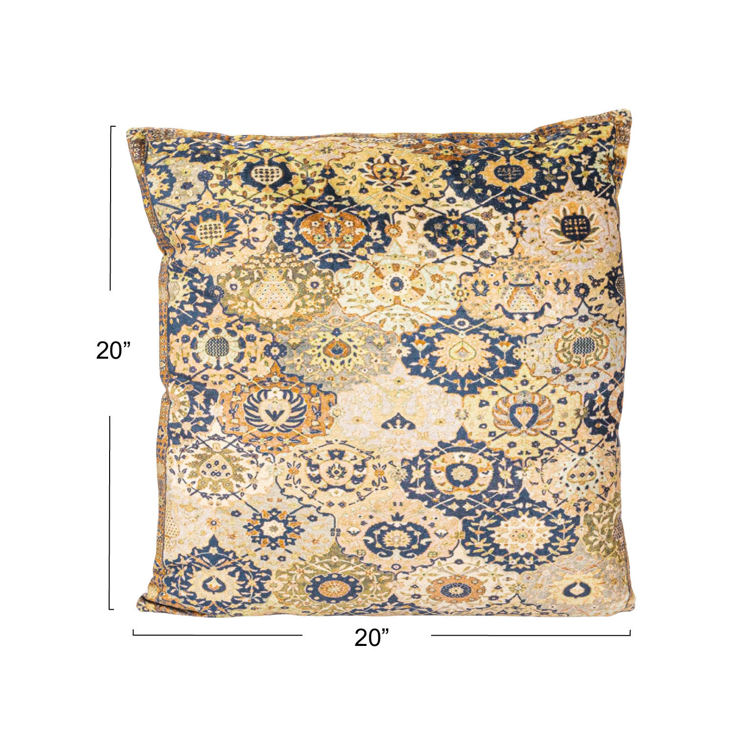 Catalog Name: 20" Square Cotton Velvet Printed Pillow w/ Design & Cotton Back, Multi Color