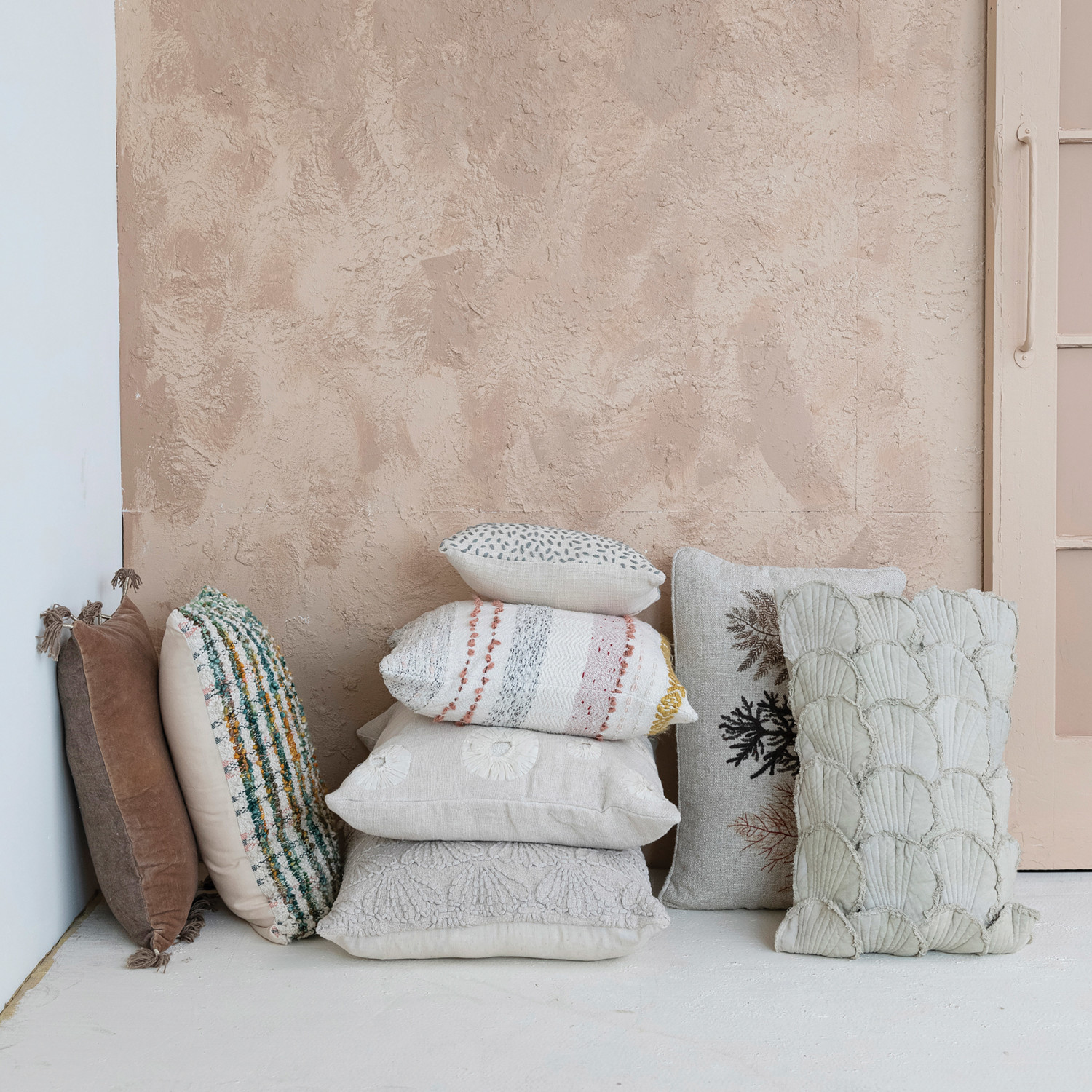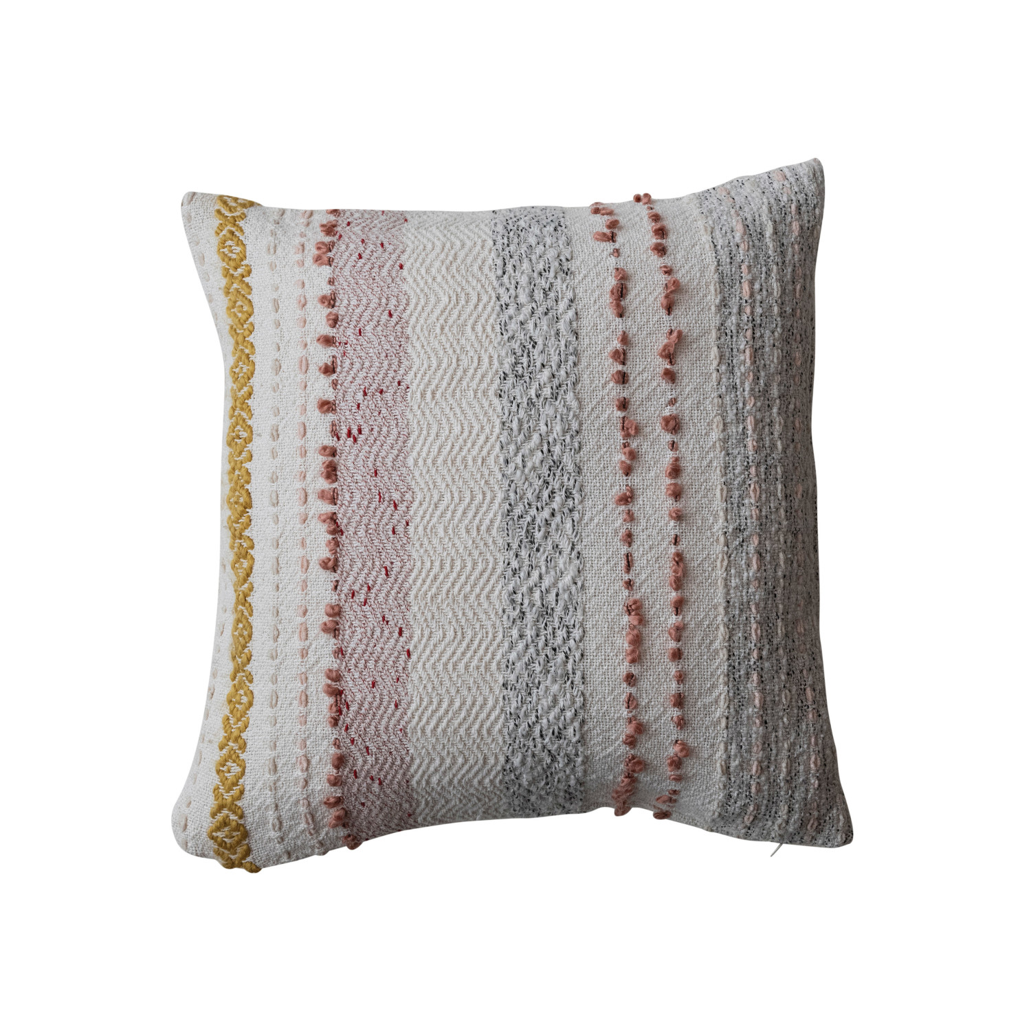 Catalog Name: 18" Square Woven Cotton Blend Pillow w/ Stripes & Embroidery, Multi Color