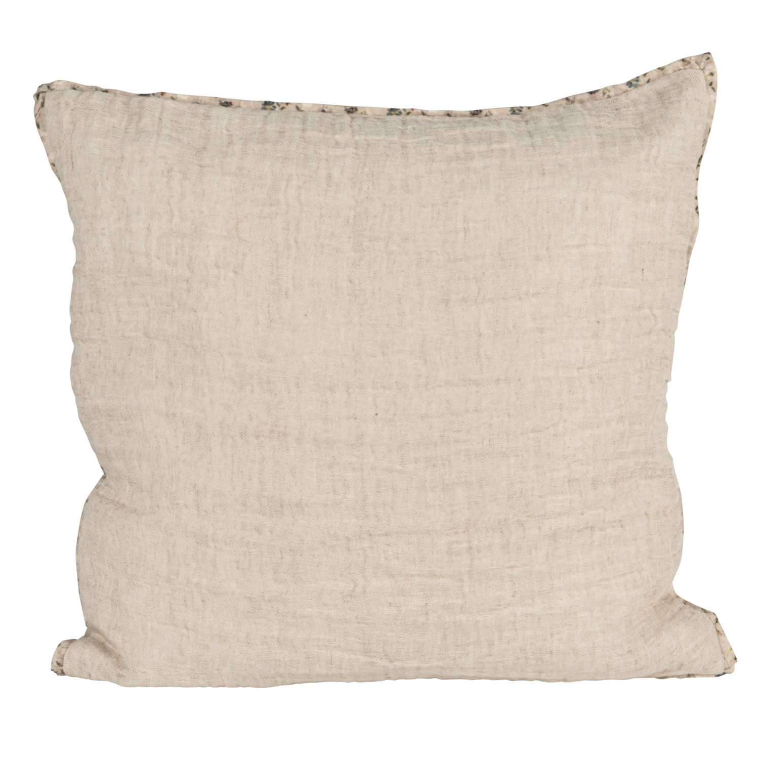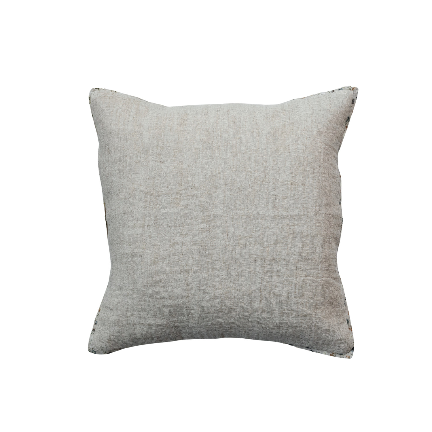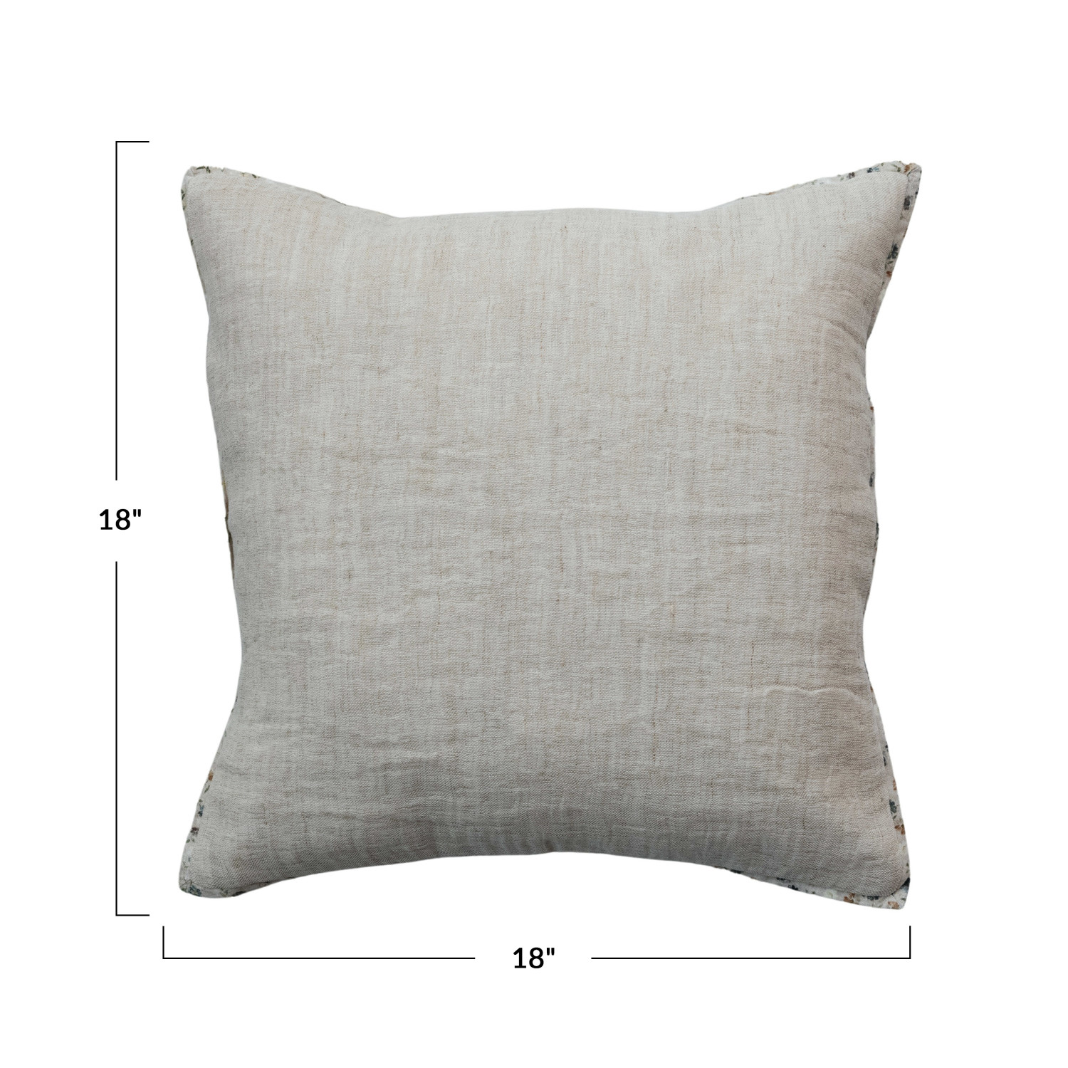 Catalog Name: 18" Square Woven Cotton & Linen Printed Pillow w/ Patterned Flanged Edge, Natural