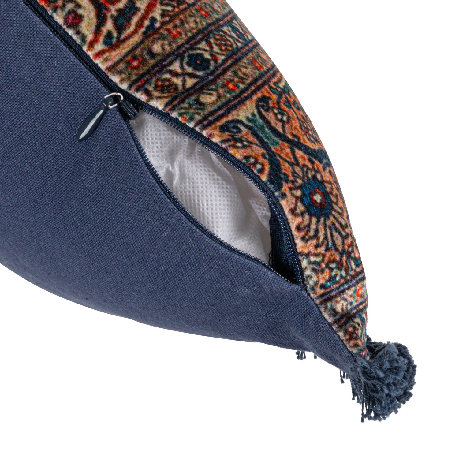 This Lumbar Pillow is a statement piece that combines functionality with a flair for the artistic. Wrapped in a cotton blend velvet, it features a vintage carpet pattern that adds a rich, textured look to any room. The fringe detailing provides a whimsical touch, while the pillow's rectangular shape makes it an ideal support for the back or neck. The multi-colored design is versatile enough to complement a variety of decor styles, from bohemian to global, and the viscose adds a subtle sheen that catches the eye. Inside, the polyester fill ensures the pillow remains plush and supportive, inviting relaxation and adding a sophisticated touch to any living space.